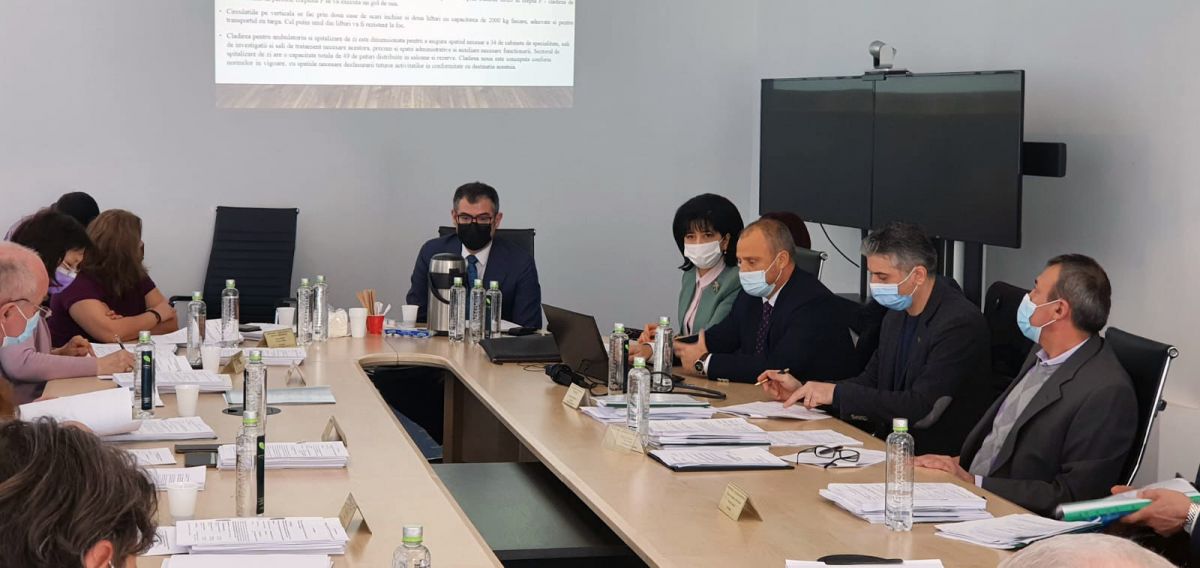 Doina Federovici, președintele Consiliului Județean, Doina Caba, managerul Spitalului Județean de Urgență „Mavromati”, Antonela Pătrașcu, directorul Direcției Investiții și Achiziții Publice, și Bogdan Șoltuzu, reprezentantul proiectantului general, au susținut în fața reprezentanților ministerelor avizatoare proiectul noului ambulatoriu.