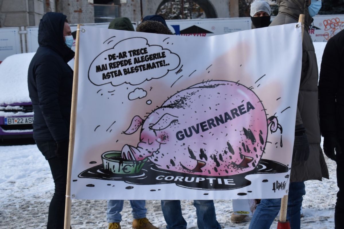 A doua oară, protestatarii au adus pe lângă vuvuzele și boxa portabilă și mai multe pancarte prin care i-au caricaturizat pe guvernanții care, în opinia lor, îi tratatează cu indiferență.