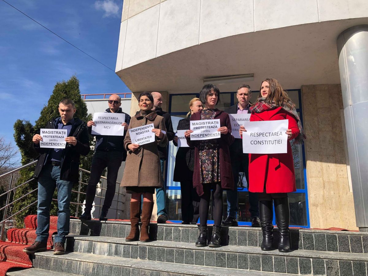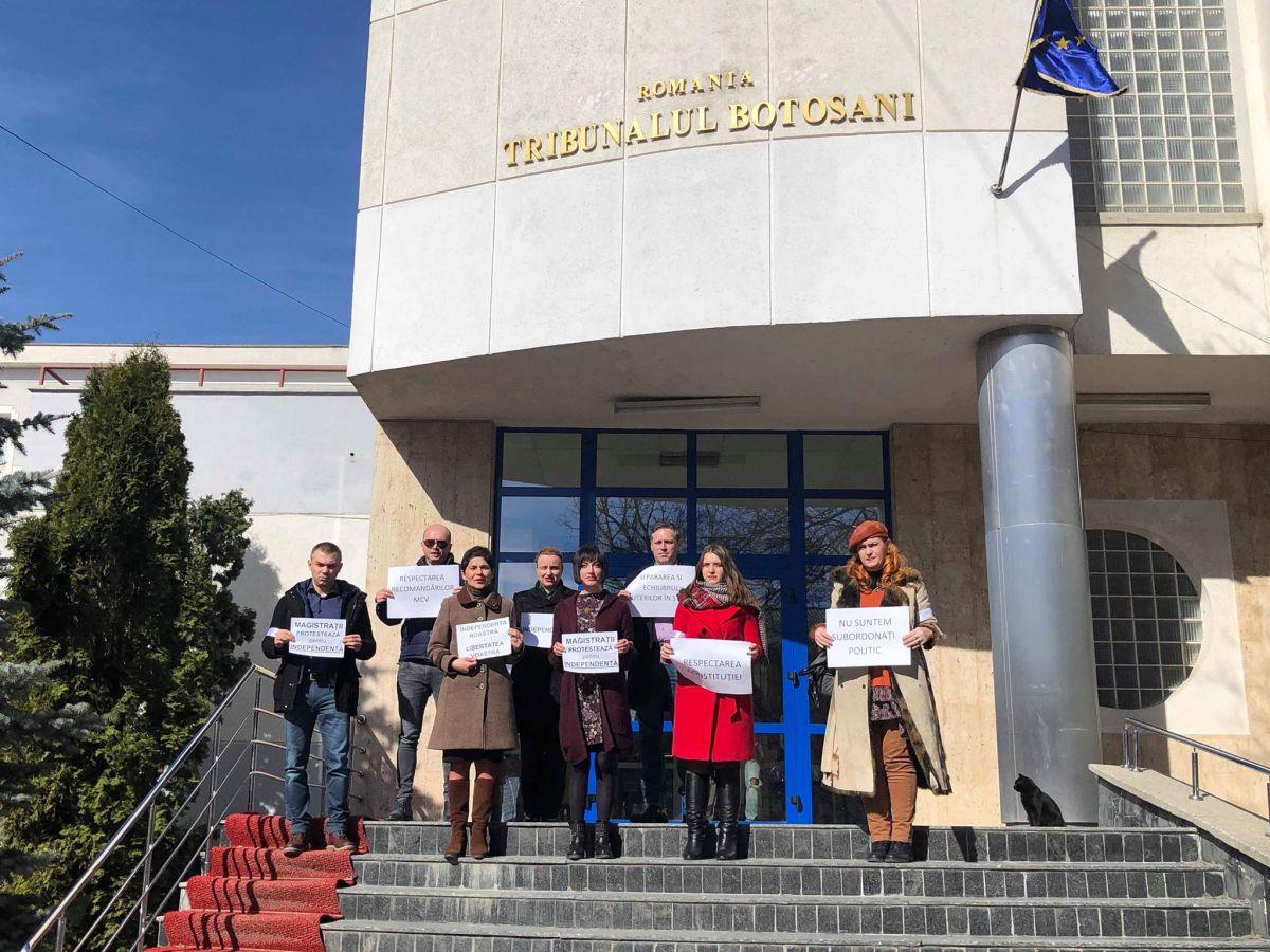 Prima zi din luna martie a venit cu un nou protest mut în fața Tribunalului Botoșani. În jurul orei 12:00 opt magistrați au ieșit afară cu pancarte pe care erau scrise diferite mesaje, dar și cu banderole albe.