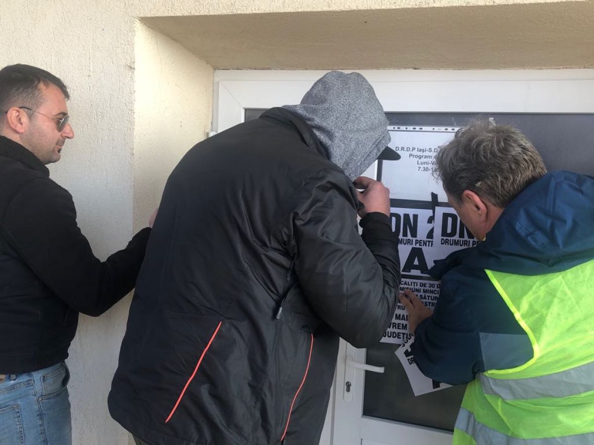 Imediat după, șoferii au oprit mașinile în dreptul stației PECO și au decis să meargă la Secția Drumuri Naționale Botoșani, filială a Direcției Regionale Drumuri și Poduri Iași pentru a lipi un afiș și a cere explicații pentru starea foarte proastă a drumurilor din județ.