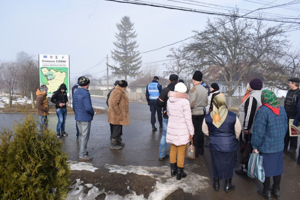 În realitate, în fața Primăriei din comuna Corni, abia s-au chinuit să se strângă 17 – 18 oameni. Erau prezente mai multe forțe de ordine decât protestatari și la aproximativ o oră și jumătate de la ora anunțată era deja clar că acesta era numărul final de participanți.