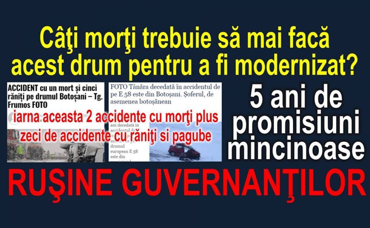 22 ianuarie 2019, CNAIR a amânat (din nou) modernizarea DN 28B (E58), Târgu Frumos – Botoșani!” este mesajul postat pe reţeaua de socializare.