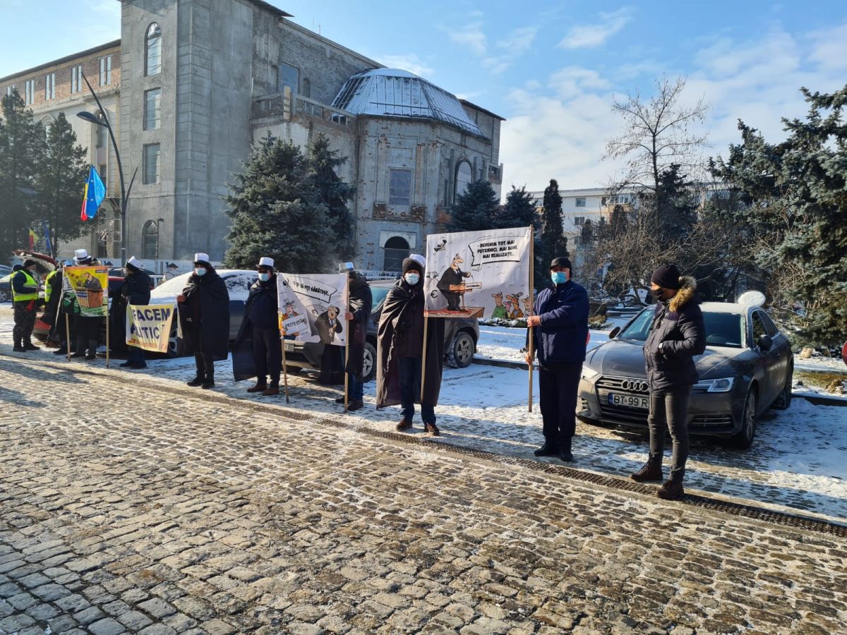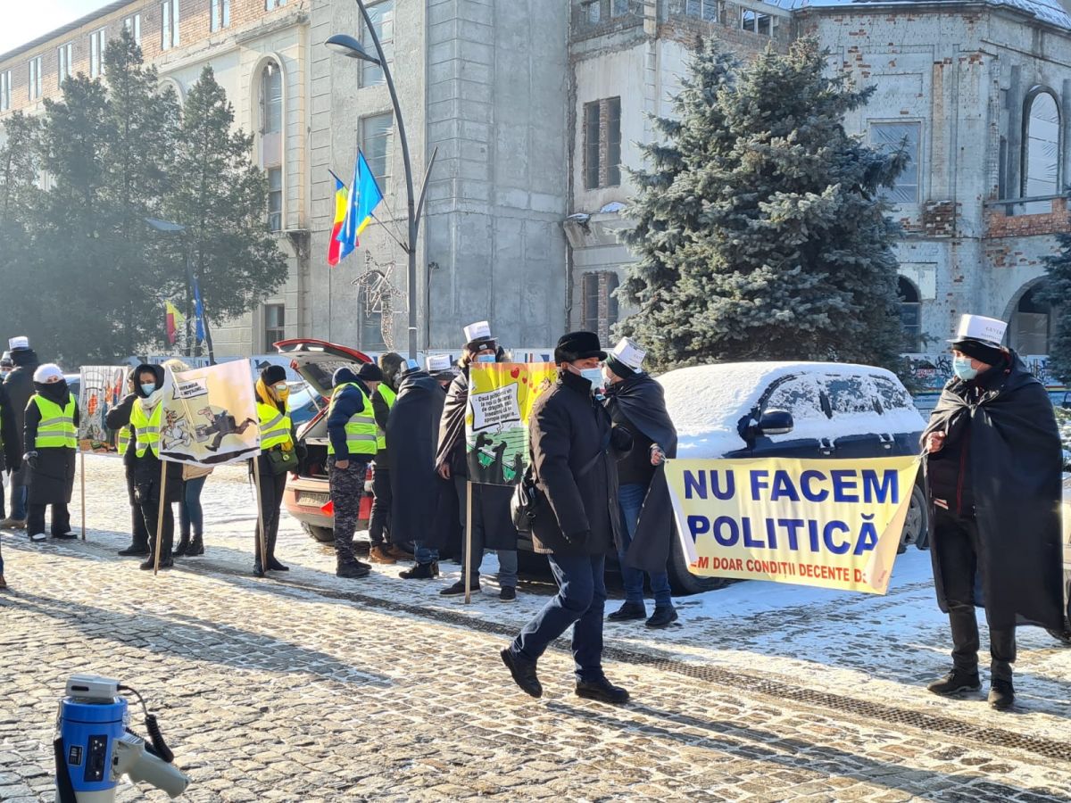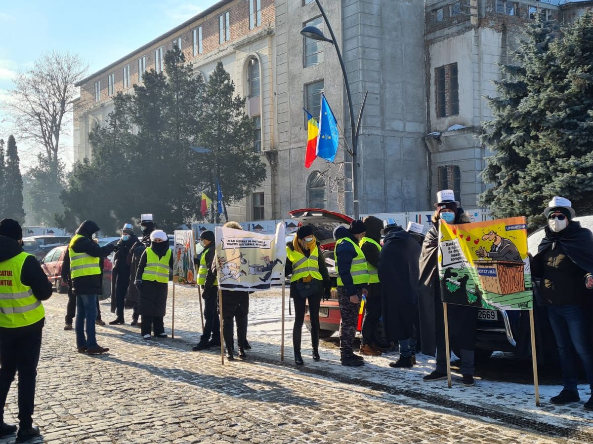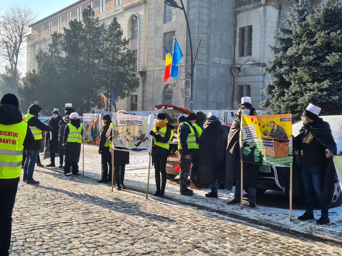 Pentru a doua zi consecutiv, o parte din cadrele Inspectoratului de Poliție Județean Botoșani protestează în fața Palatului Administrativ.