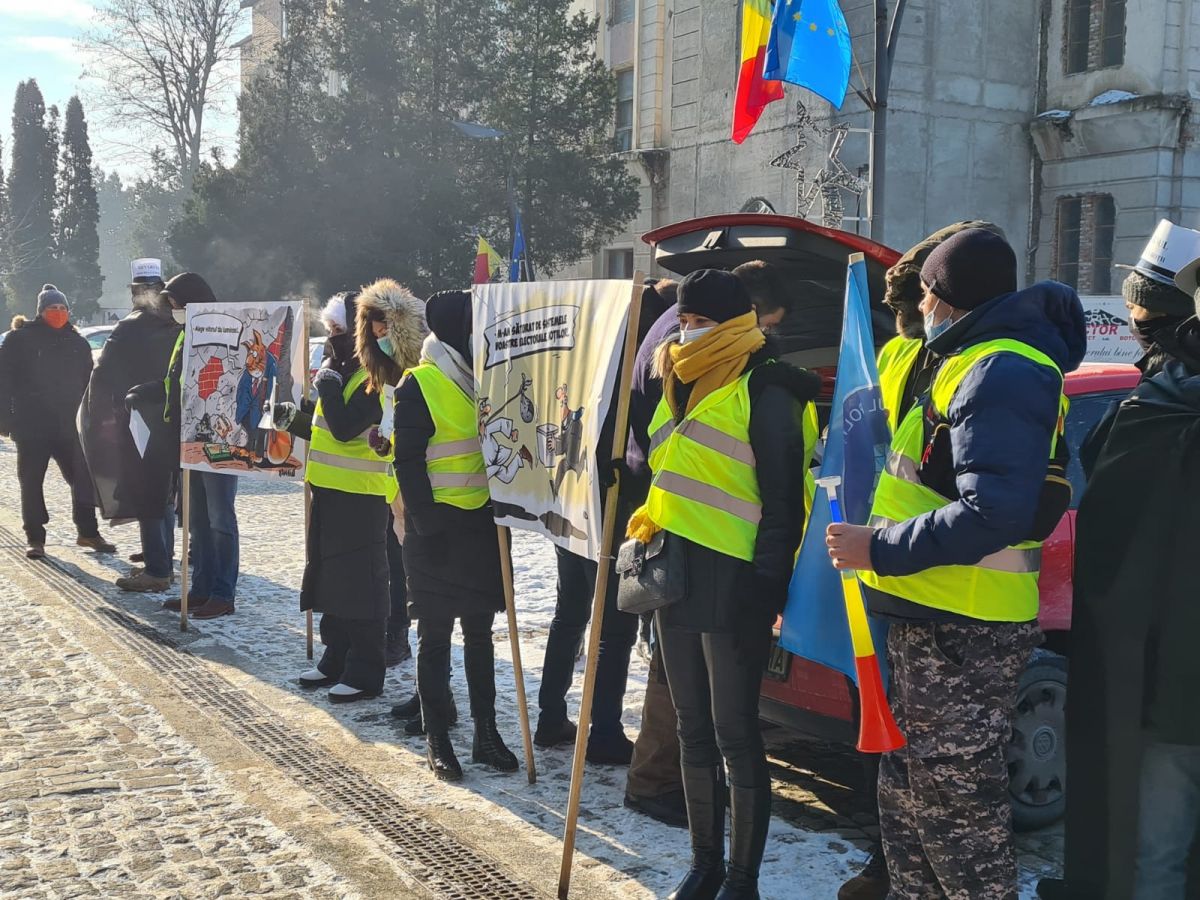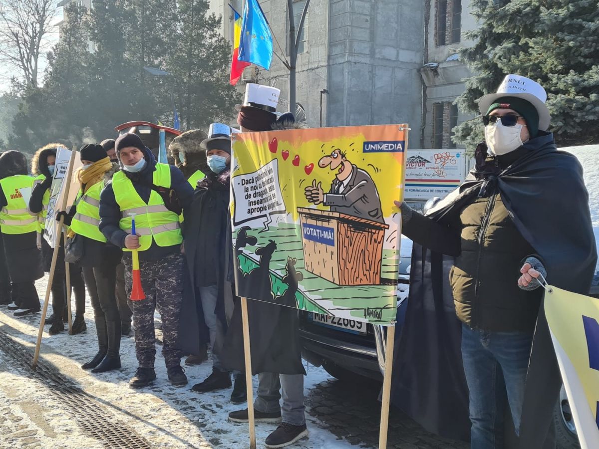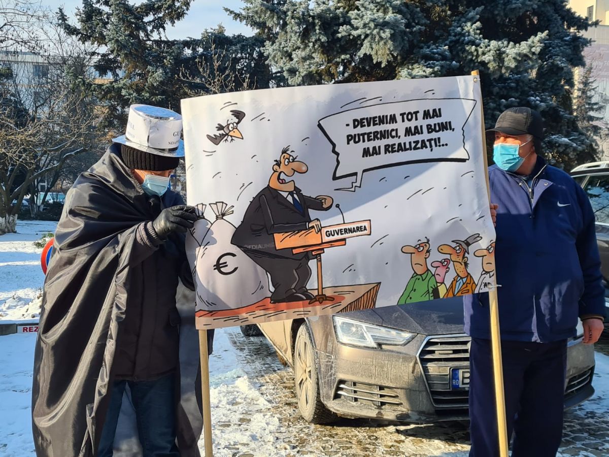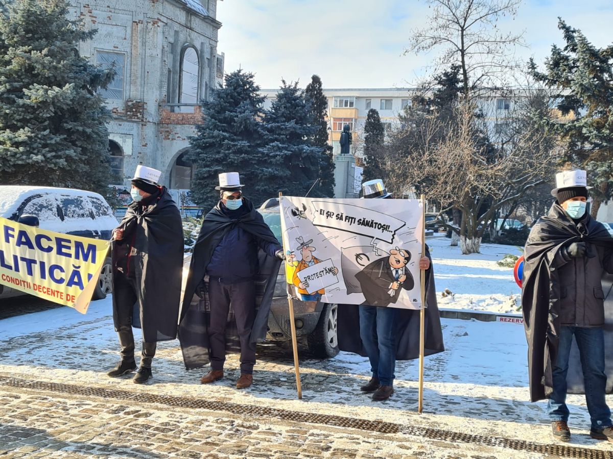 Pentru a doua zi consecutiv, o parte din cadrele Inspectoratului de Poliție Județean Botoșani protestează în fața Palatului Administrativ.