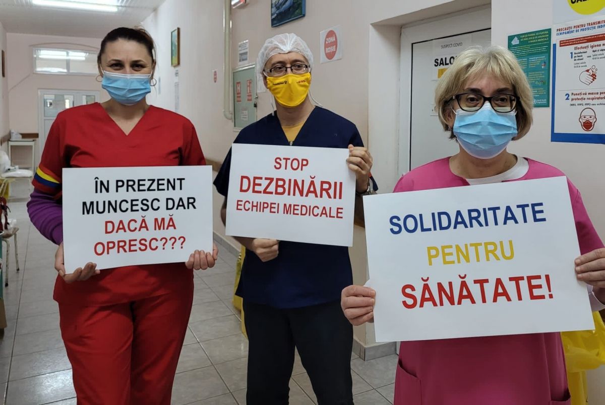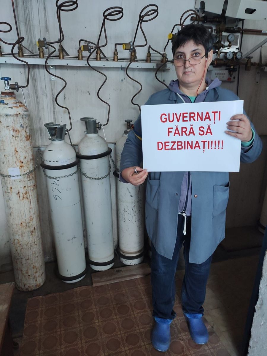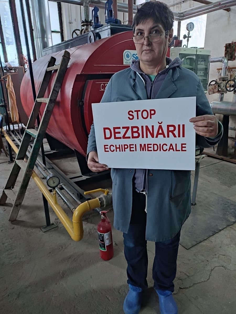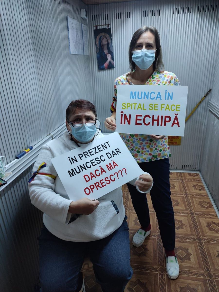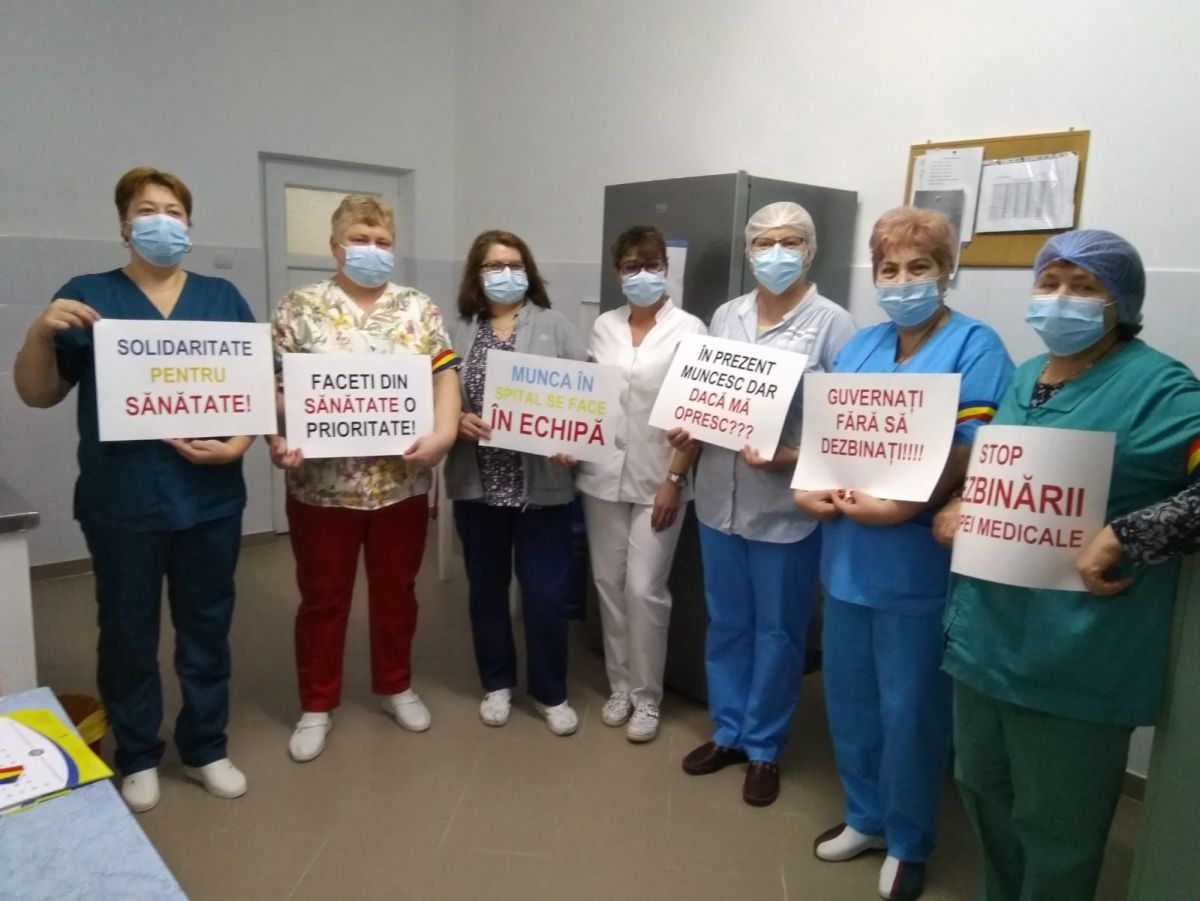 Angajații au avut în mână pancarte cu diferite mesaje precum Stop dezbinării echipei medicale, Guvernați fără să dezbinați!