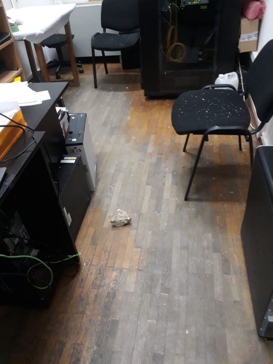 Au nimerit biroul IT, pietroiul fiind găsit a doua zi de funcționari în mijlocul încăperii. Din fericire, nu a fost afectat niciun echipament al rețelei municipalității și nici nu s-a încercat să se pătrundă în interior pentru a fi sustrase eventuale bunuri.