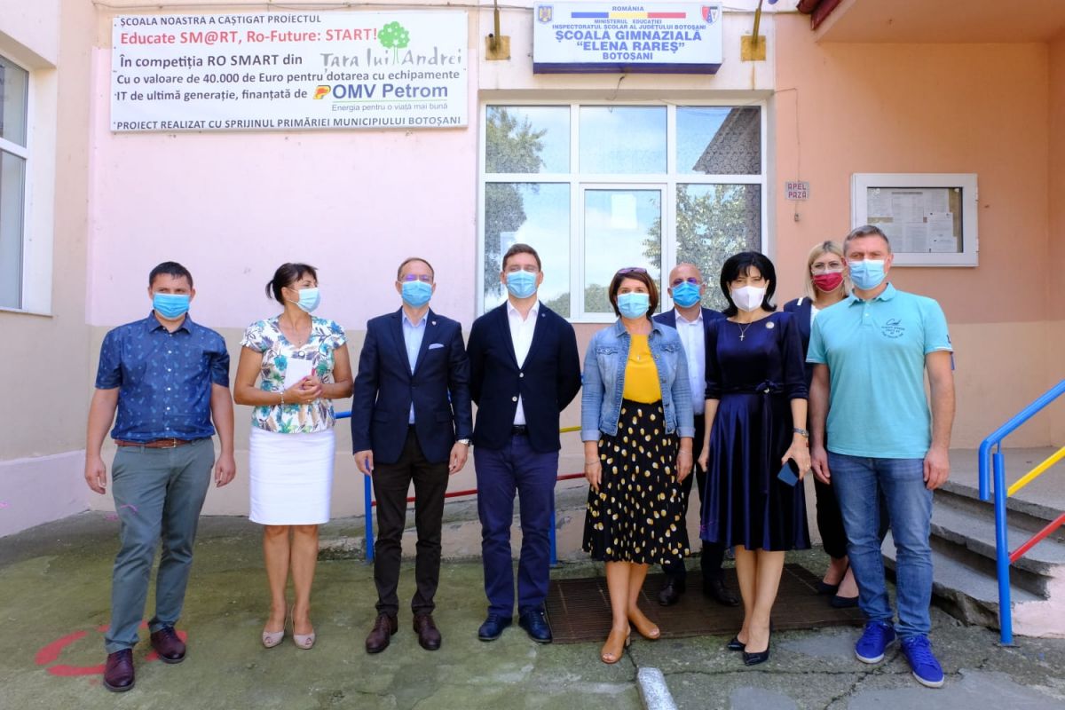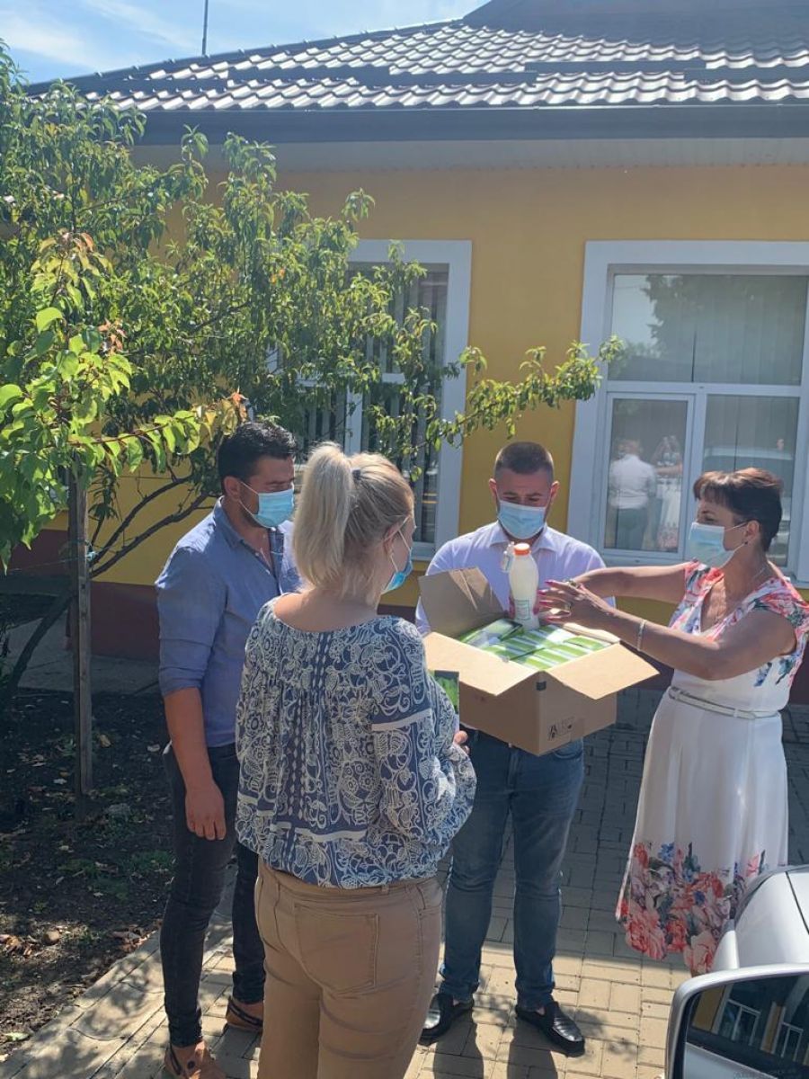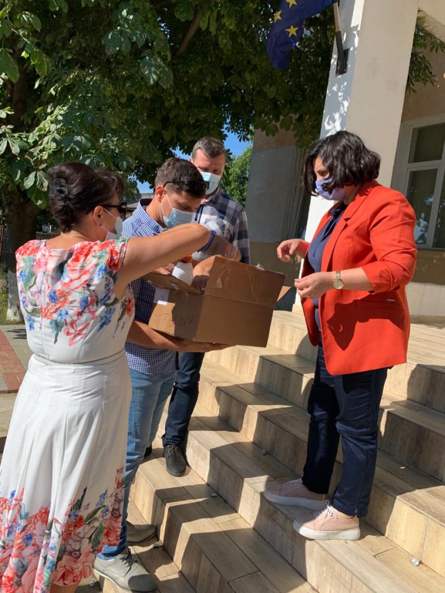 Candidații PSD pentru președinția Consiliului Județean și primăria municipiului Botoșani, Doina Federovici și Cosmin Andrei împreună cu europarlamentarul Victor Negrescu și cu parlamentarii social-democrați și membrii Organizației Județene au donat ieri 10.000 de măști de protecție și dezinfectant pentru elevii și profesorii de la mai multe școli din Botoșani pentru începerea anului școlar.