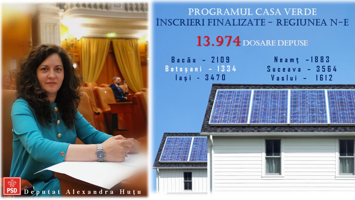 Astăzi, 29 mai 2023, ora 10.00, s-a deschis sesiunea de înscriere a persoanelor fizice în cadrul Programului Casa Verde Fotovoltaice pentru Regiunea Nord-Est, în cadrul căreia 1334 de botoșăneni au rezervat suma de 26.680.000 lei pentru instalarea sistemelor de panouri fotovoltaice pentru producerea de energie electrică. Bugetul total pentru Regiunea Nord-Est – județele Bacău, Botoșani, Iași, Neamț, Suceava și Vaslui este de 279.480.000 lei, al doilea cel mai mare buget alocat din cele 8 regiuni.