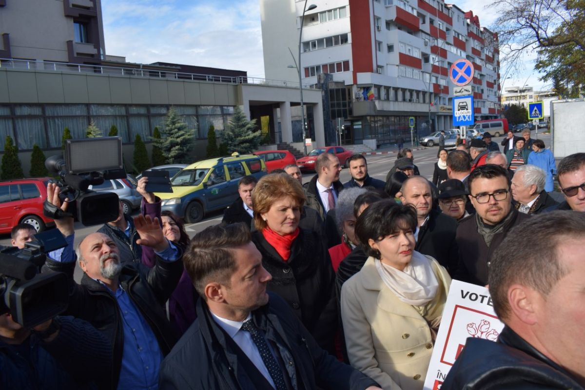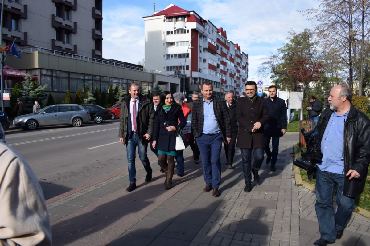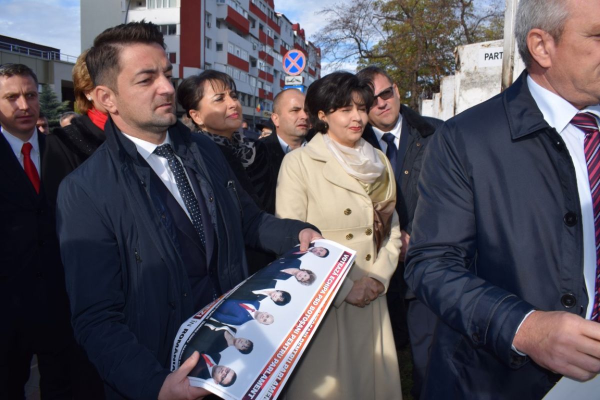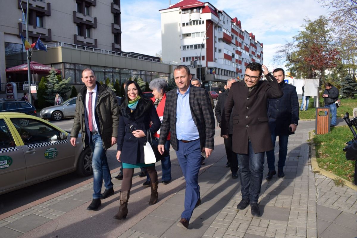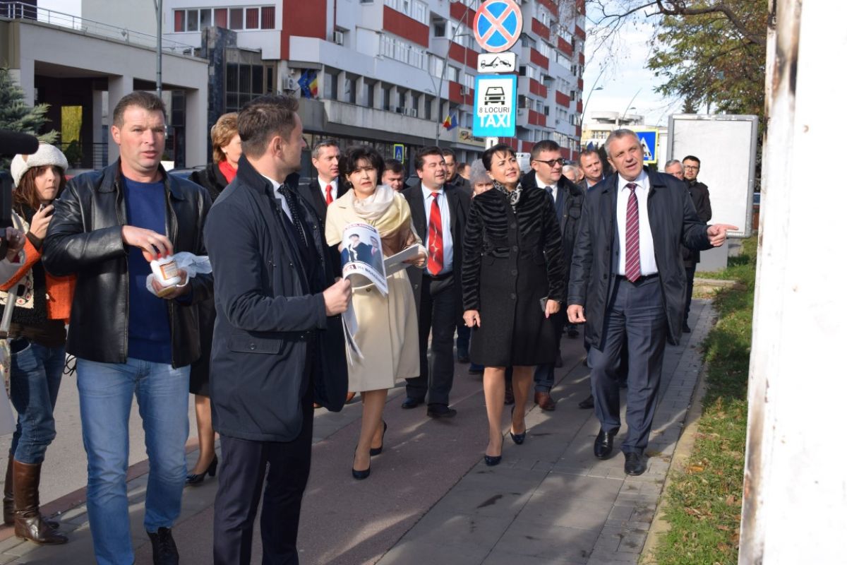 După acest moment alaiul social democrat a pornit. În frunte, cele trei doamne cu frâiele și președintele de la municipiu, aproape eclipsat. ”Vă rog doamnelor să-mi faceți și mie loc să apar în fotografii”, le-a spus râzând Costică Macaleți, Doinei Federovici, Tamarei Ciofu și Mihaelei Huncă.