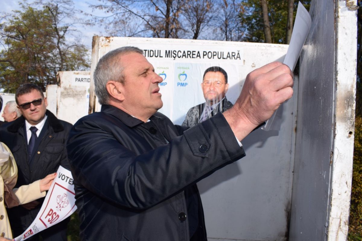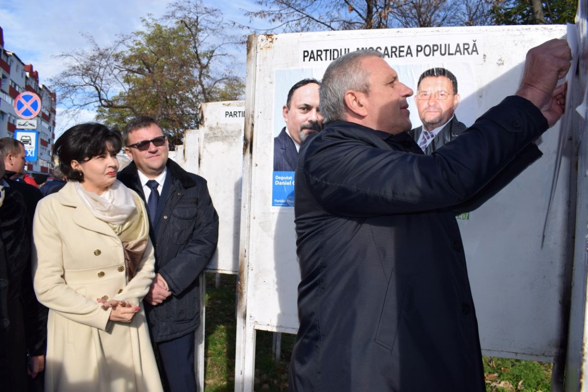 Prima oprire la panourile de lângă Parcul Primăriei. Cel care a lipit primul afiș a fost Costică Macaleți și nu vreunul dintre candidați. Fotografia electorală i-a fost înmânată de Răzvan Rotaru, care vrea să ajungă deputat.