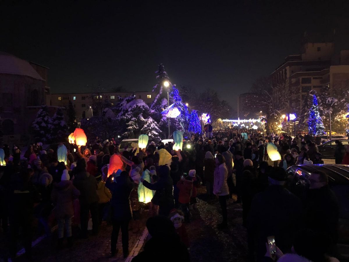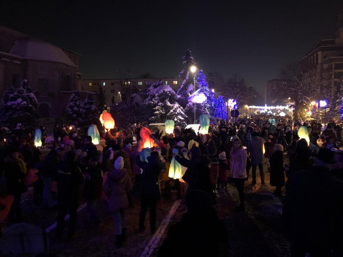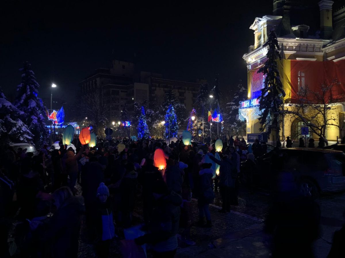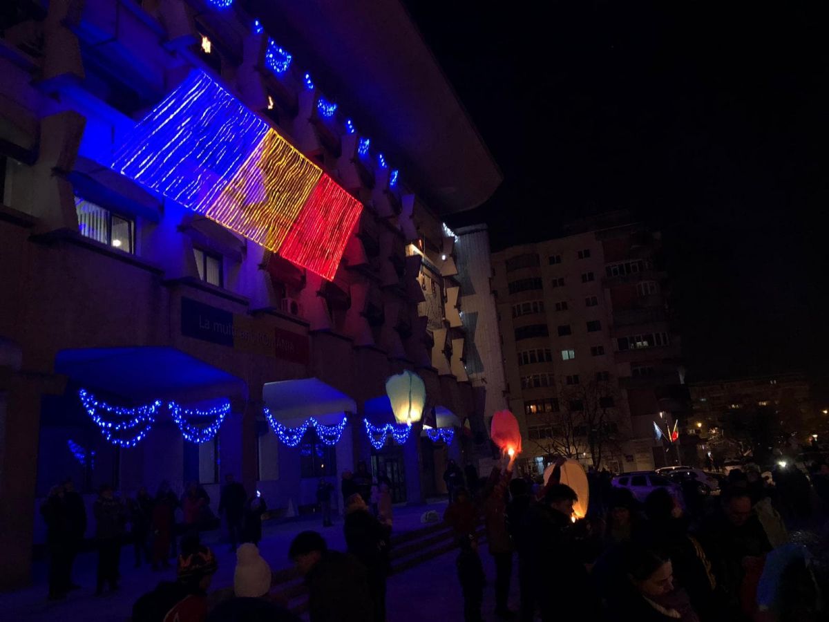 Asemenea Prefecturii, membrii PSD Botoșani au lansat spre cer 100 de lampioane colorate în simbolurile naționale roșu, galben și albastru.