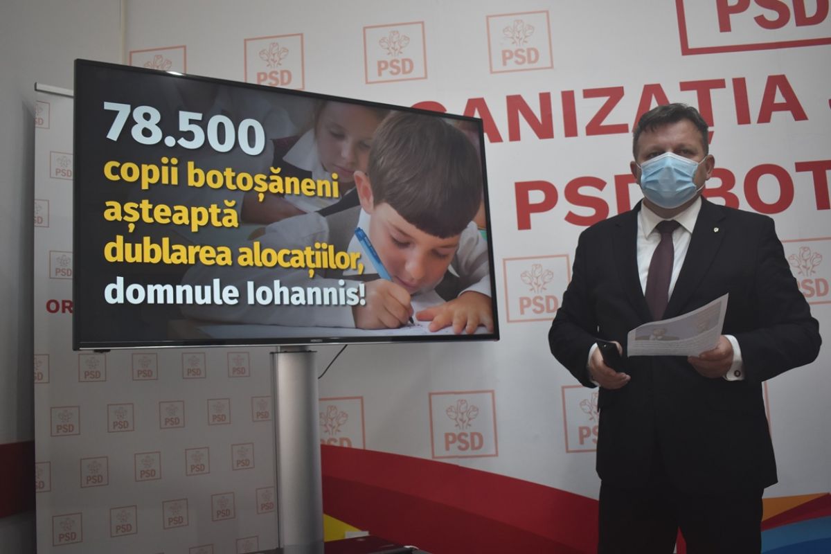 A doua referire la Botoșani: numărul de copii care beneficiază de alocație, prilej de un nou apel către parlamentarii botoșăneni liberali să voteze mărirea alocațiilor.
