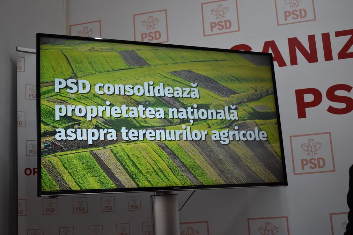 Pe lângă faptul că au dat cu var și au lipit autocolante noi cu sigla partidului, social-democrații au venit cu alt element de noutate: un televizor pe care au proiectat grafice și imagini.