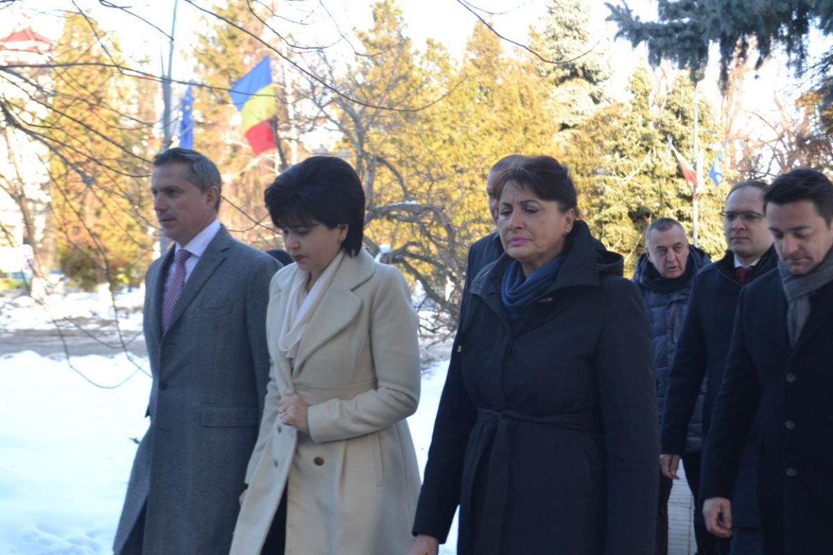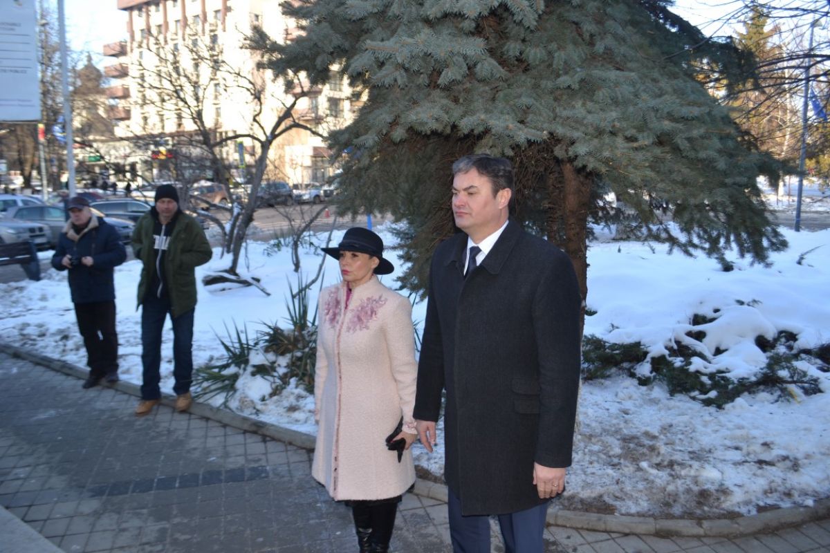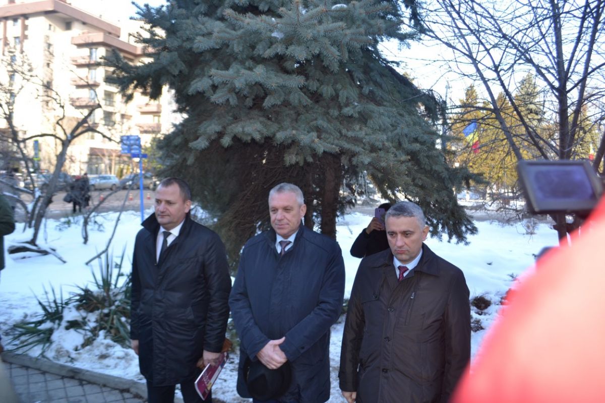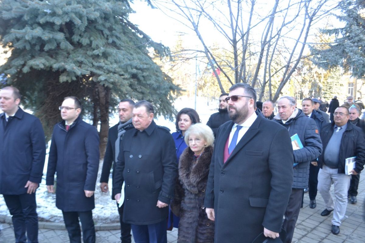 Seria manifestărilor dedicate poetului nepereche a continuat cu depunerea de coroane la bustul din fața Teatrului „Mihai Eminescu”.
