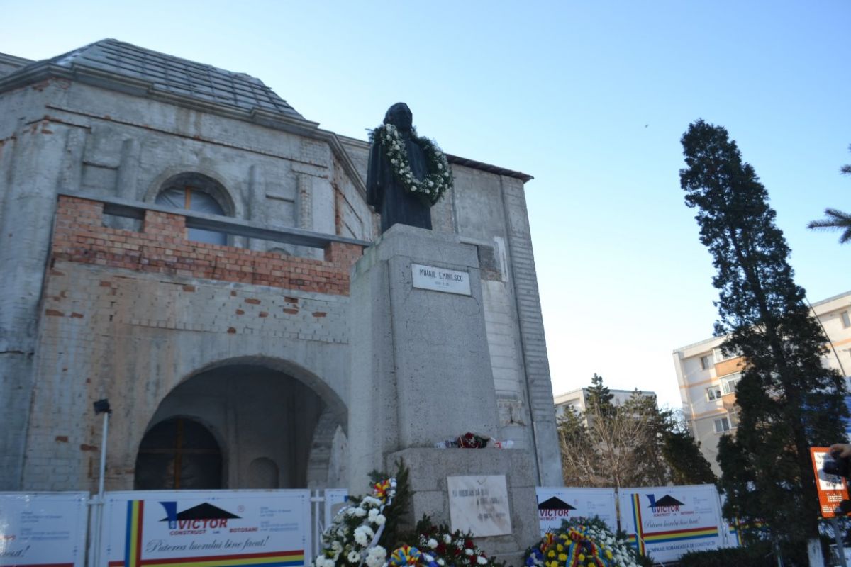 Depunerea de coroane la bustul din fața Teatrului Mihai Eminescu s-a terminat foarte repede pe fundalul cunoscut de câțiva ani și anume ruina care stă neclintită în centrul orașului.