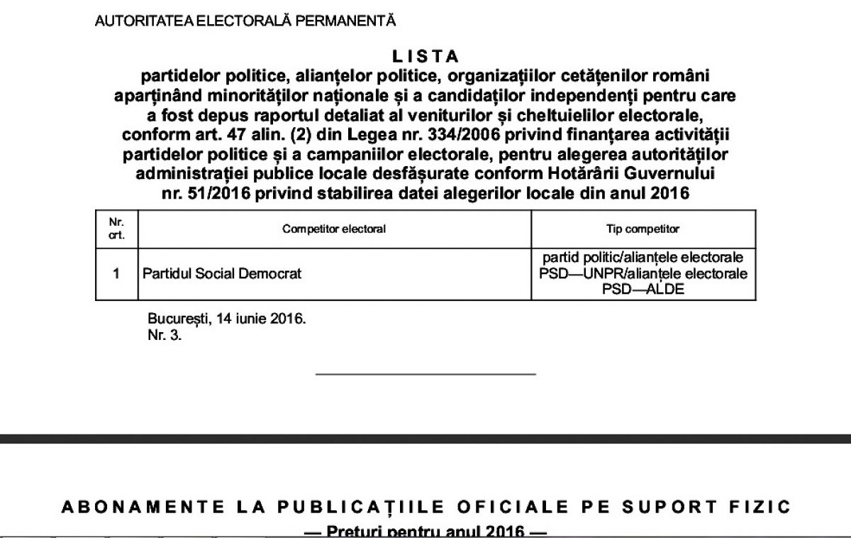 ”PSD Botoșani, alături de celelalte organizații din țară, a depus la AEP raportul mandatarului financiar general cu privire la cheltuielile efectuate în campania electorală la nivel național, încă din data de 13 iunie 2016, dovadă fiind anunțul apărut în Monitorul Oficial al României, Partea I, nr. 444 din 14.06.2016”