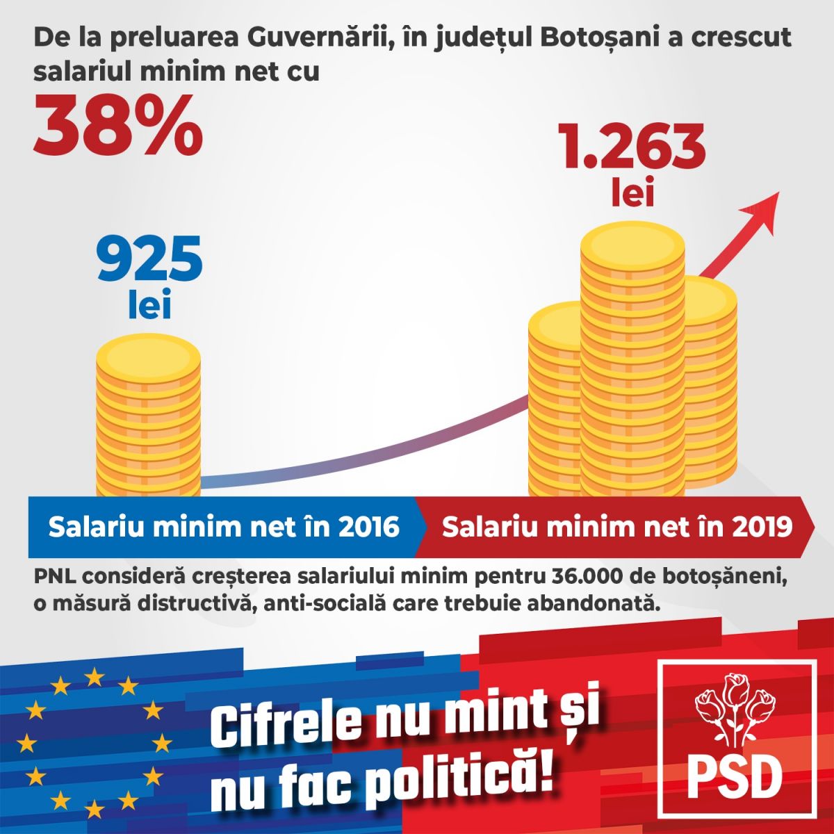 PSD Botoșani solicită parlamentarilor și conducerii PNL Botoșani să își exprime o poziție publică referitoare la intențiile exprimate de conducerea centrală a PNL de a tăia sau de a desființa cu totul salariul minim pe economie.