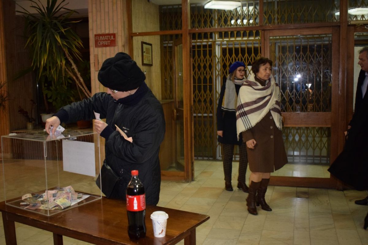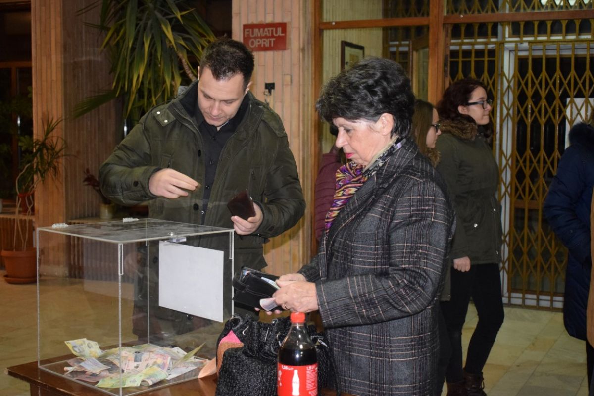 Într-adevăr la intrare a putut fi observată urna în care s-au donat diverse sume de către oamenii cu suflet ai orașului, de la bancnote de 100 de lei, la cele de 5 lei, fiecare după posibilități. Suma strânsă a fost de aproximativ 2.600 de lei, fără banii strânși pe bază de invitații, la Primărie.