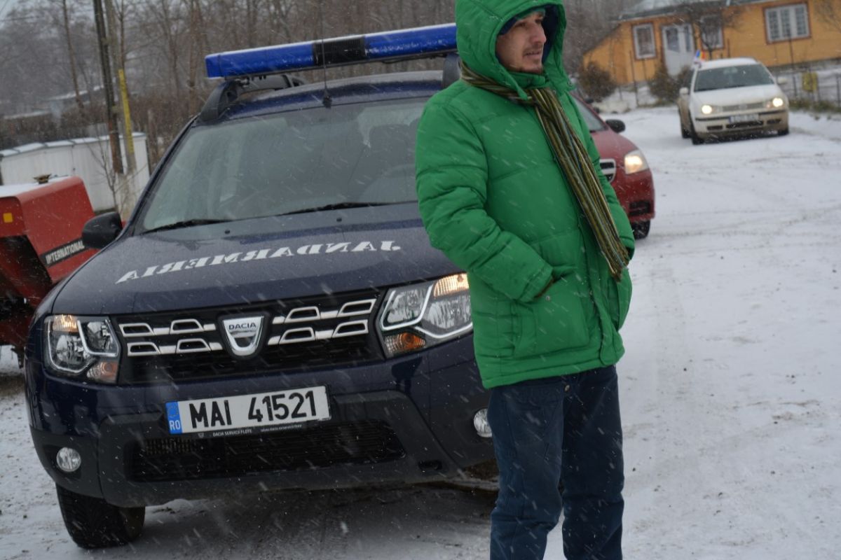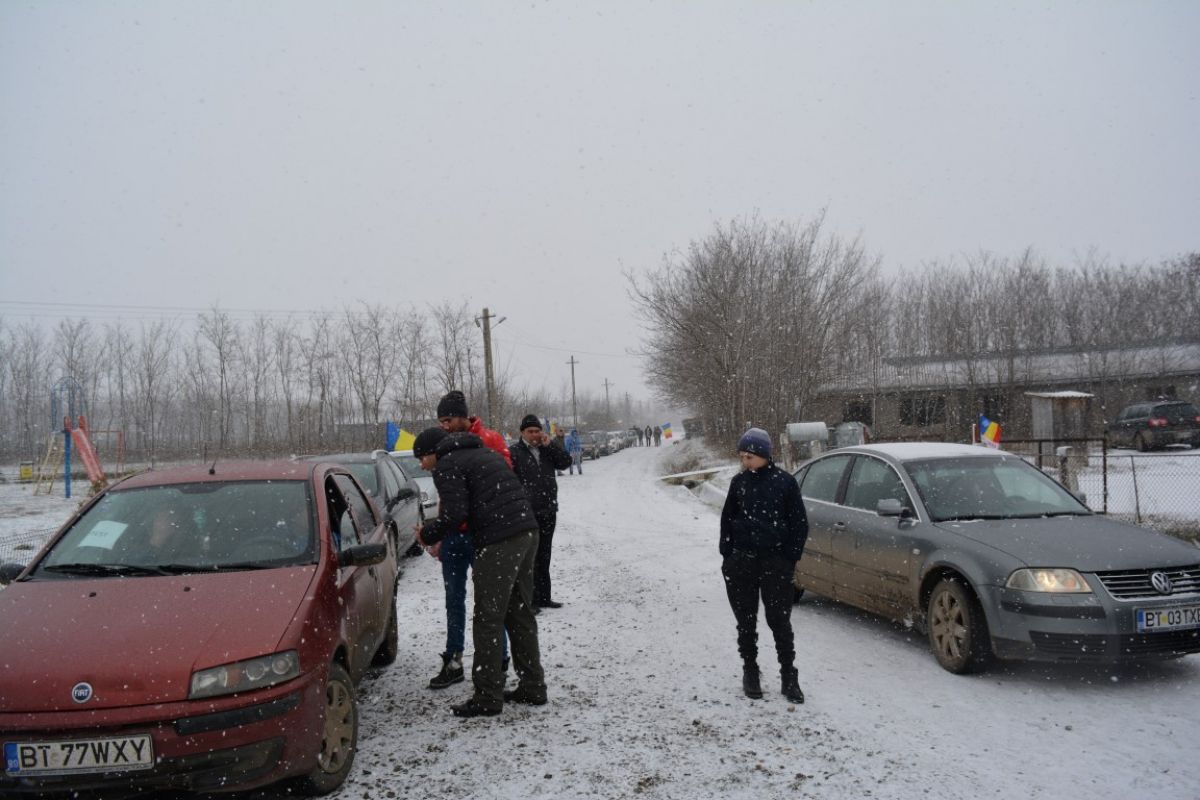 Sunt prezente trei mașini de Poliție, inclusiv una de la Biroul Rutier de la Botoșani și două de jandarmi.