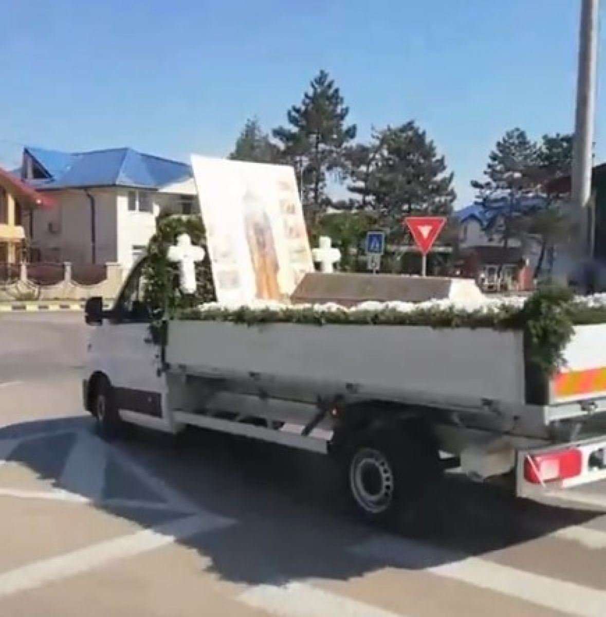 Cu toate acestea, mașina cu sfintele moaște a străbătut duminică orașul, trecând pe lângă biserici și spitale.