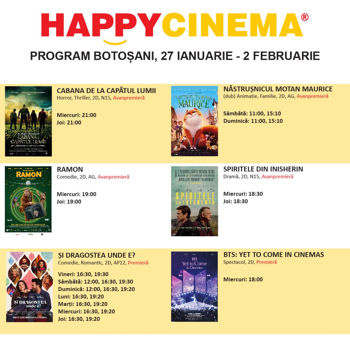 Cinefilii botoșăneni sunt așteptați începând de astăzi la Happy Cinema.