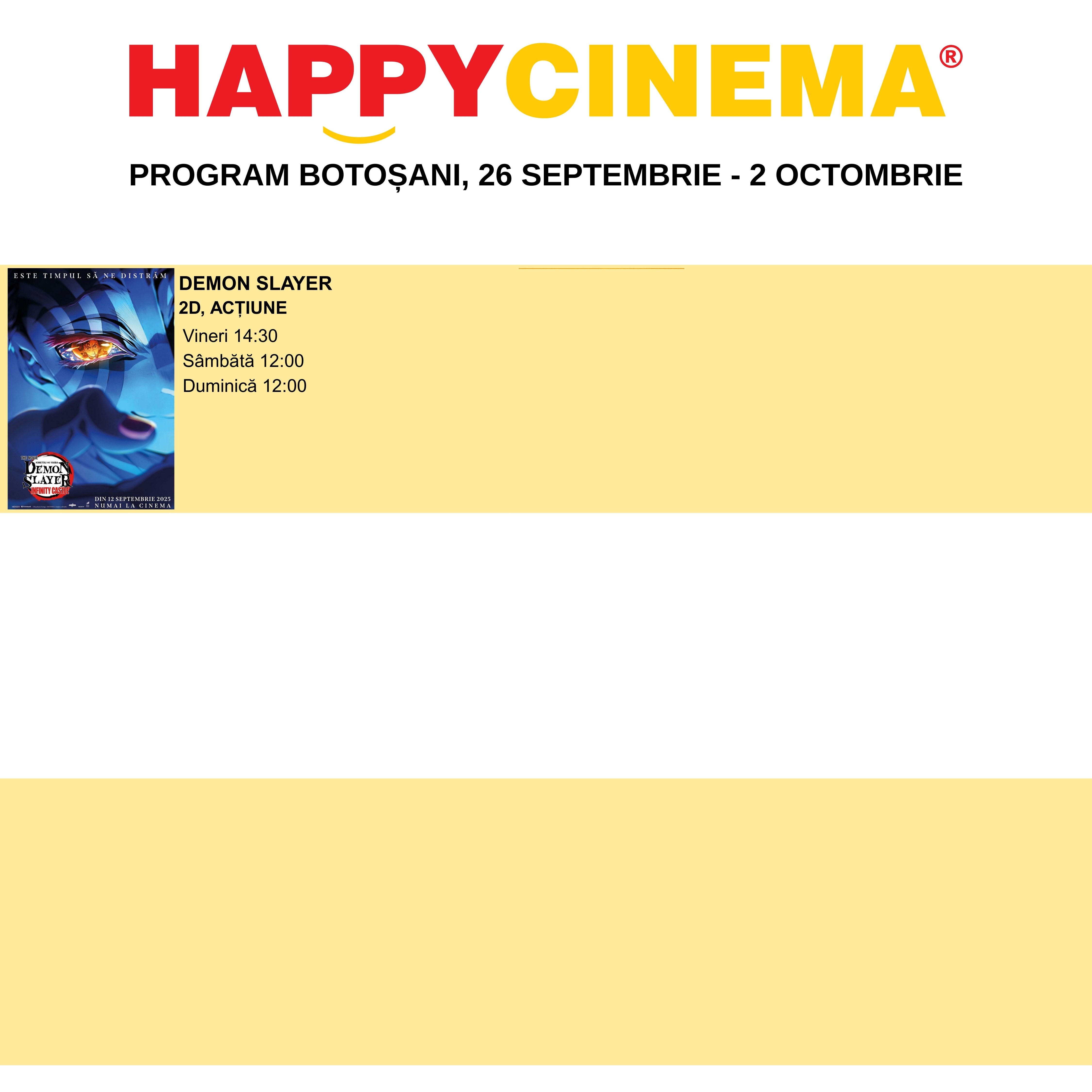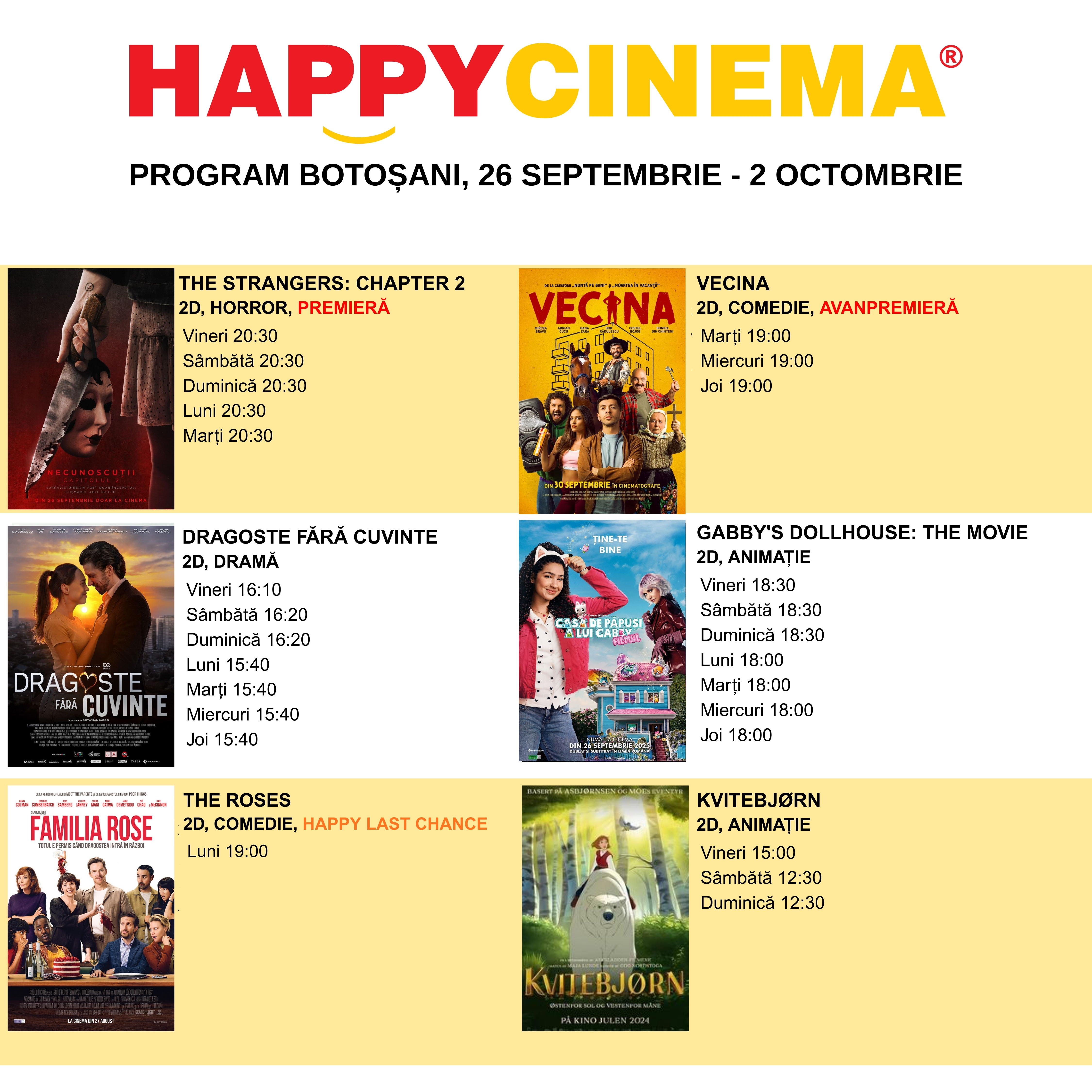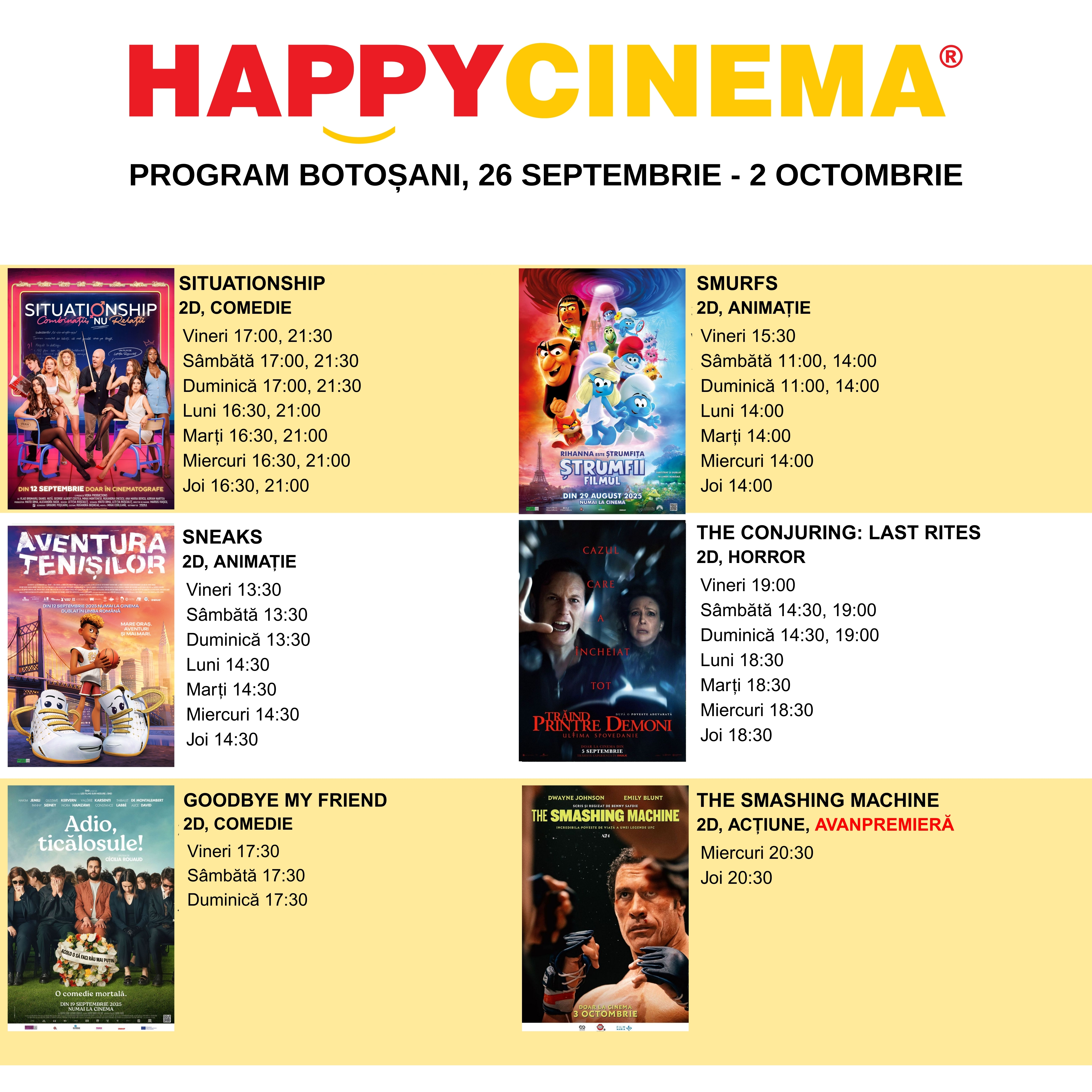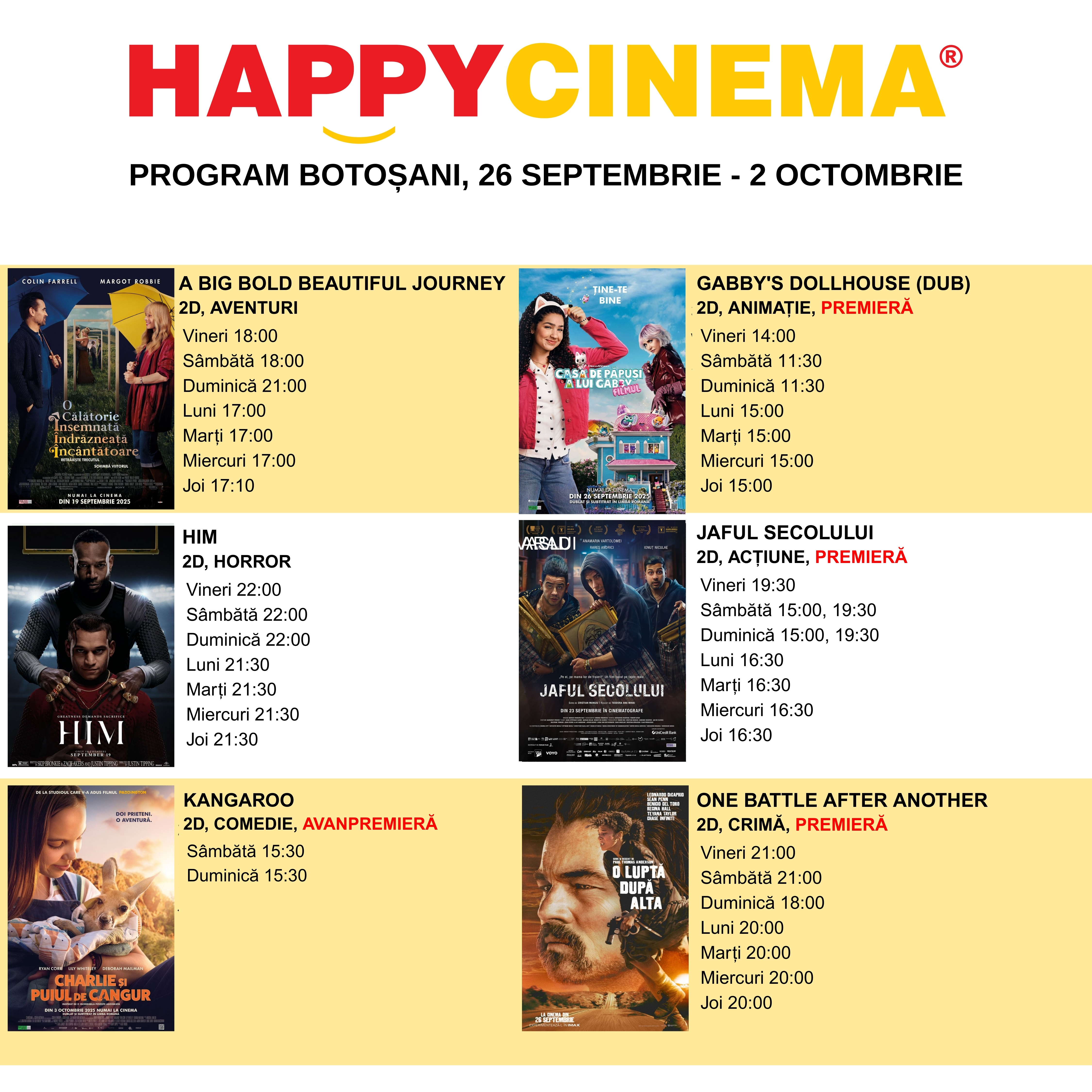 Happy Cinema Botoșani anunță programul filmelor pentru săptămâna 26 septembrie – 1 octombrie 2025