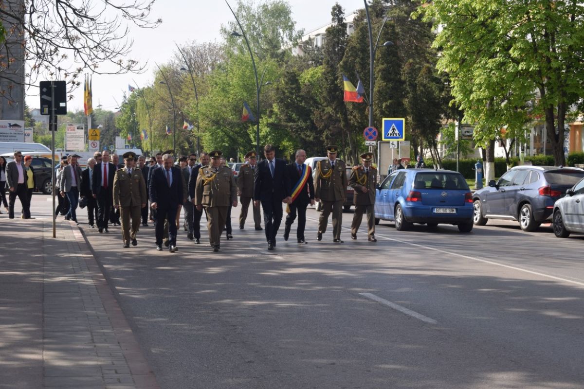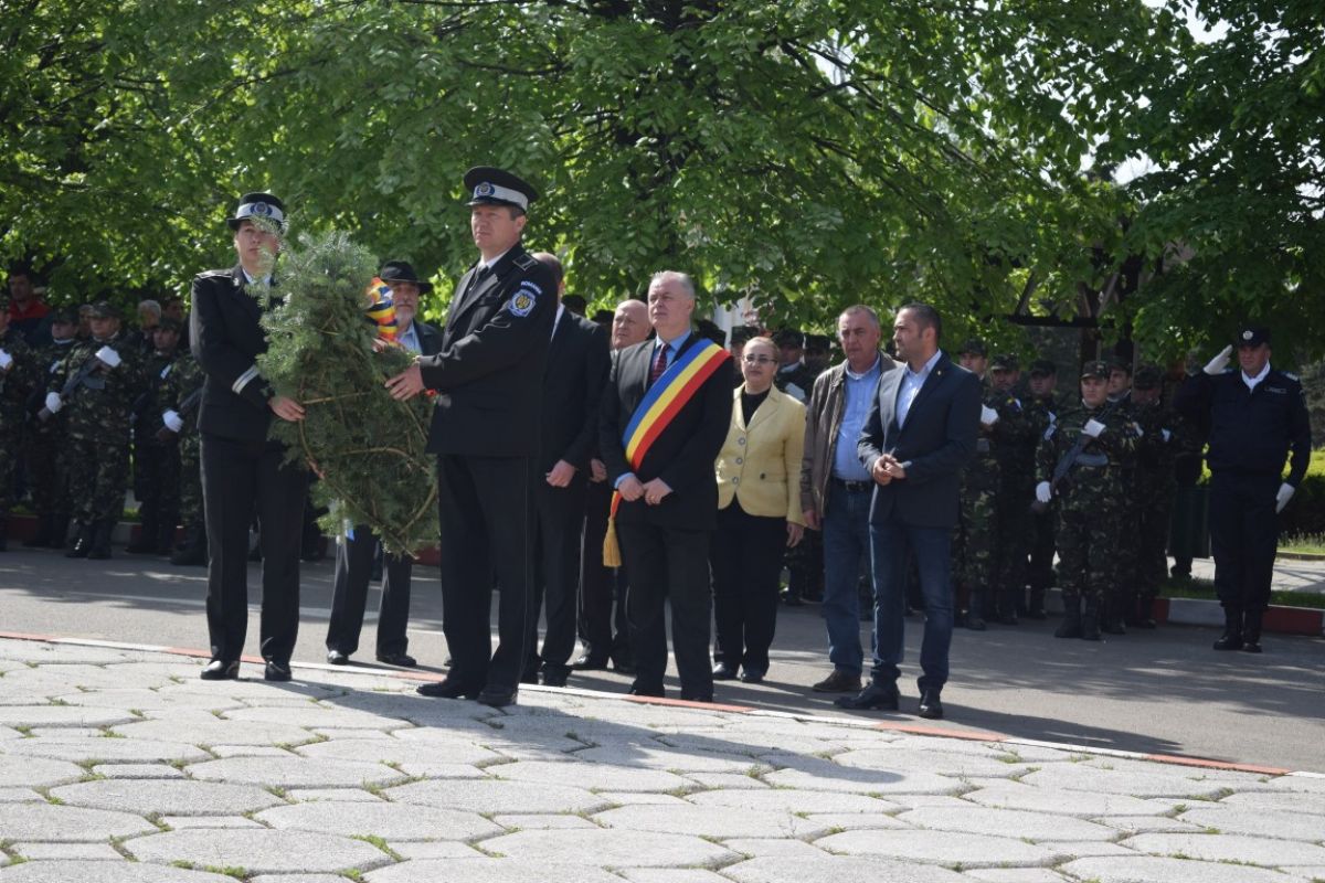 Careul a fost făcut lângă Monumentul închinat Eroilor din cel de-al Doilea Război Mondial iar singurii care au vorbit au fost prefectul Dan Șlincu care a dat de fapt citire mesajului trannsmis de ministrul de interne, Carmen Dan și președintele Asociației Veteranilor de Război, Gheorghe Jalbă.