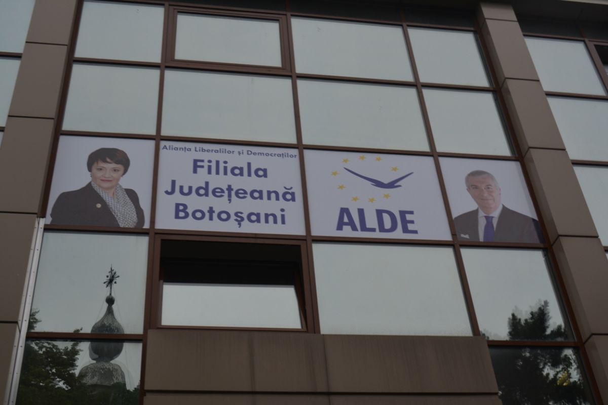 Cum în același imobil ALDE are din acest ani și sediul organizației județene, a fost lipită și o poză de dimensiuni mai generoase cu Liliana Mincă, șefa care conduce filiala Botoșani de la București.