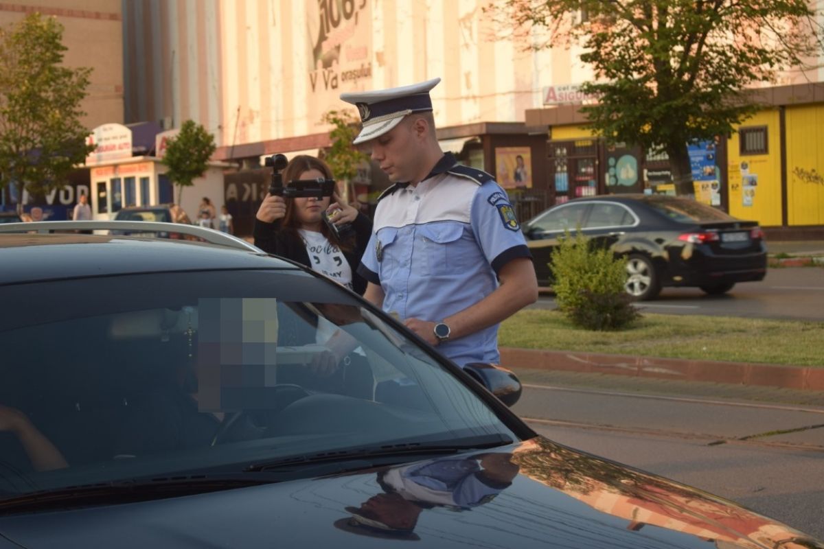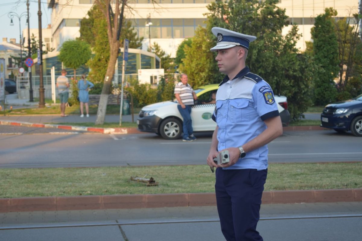 Un echipaj de la Biroul Rutier a acționat pe Calea Națională, lângă Biblioteca Județeană. Au fost opriți mai mulți șoferi. Toți au fost lăsați să plece după ce au fost testați, rezultatele fiind negative. Un singur tânăr a fost surprins fără centură și a primit avertisment.