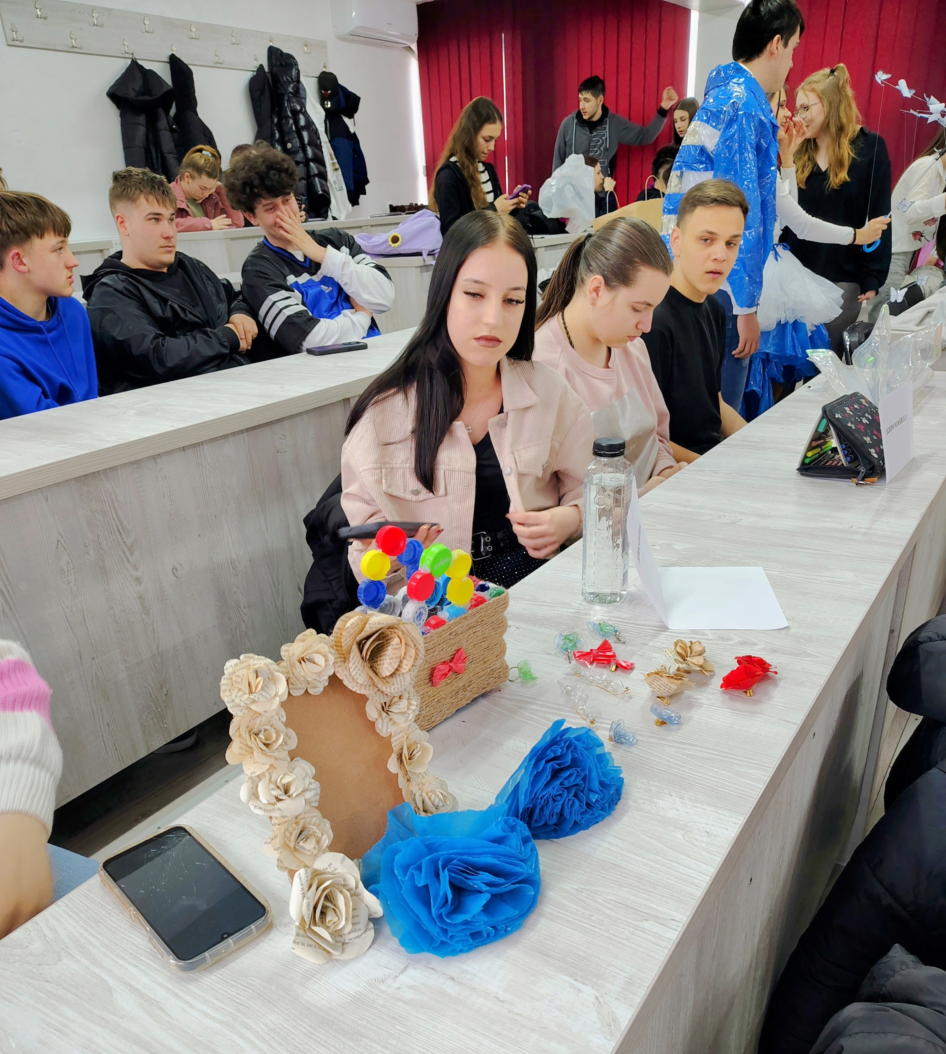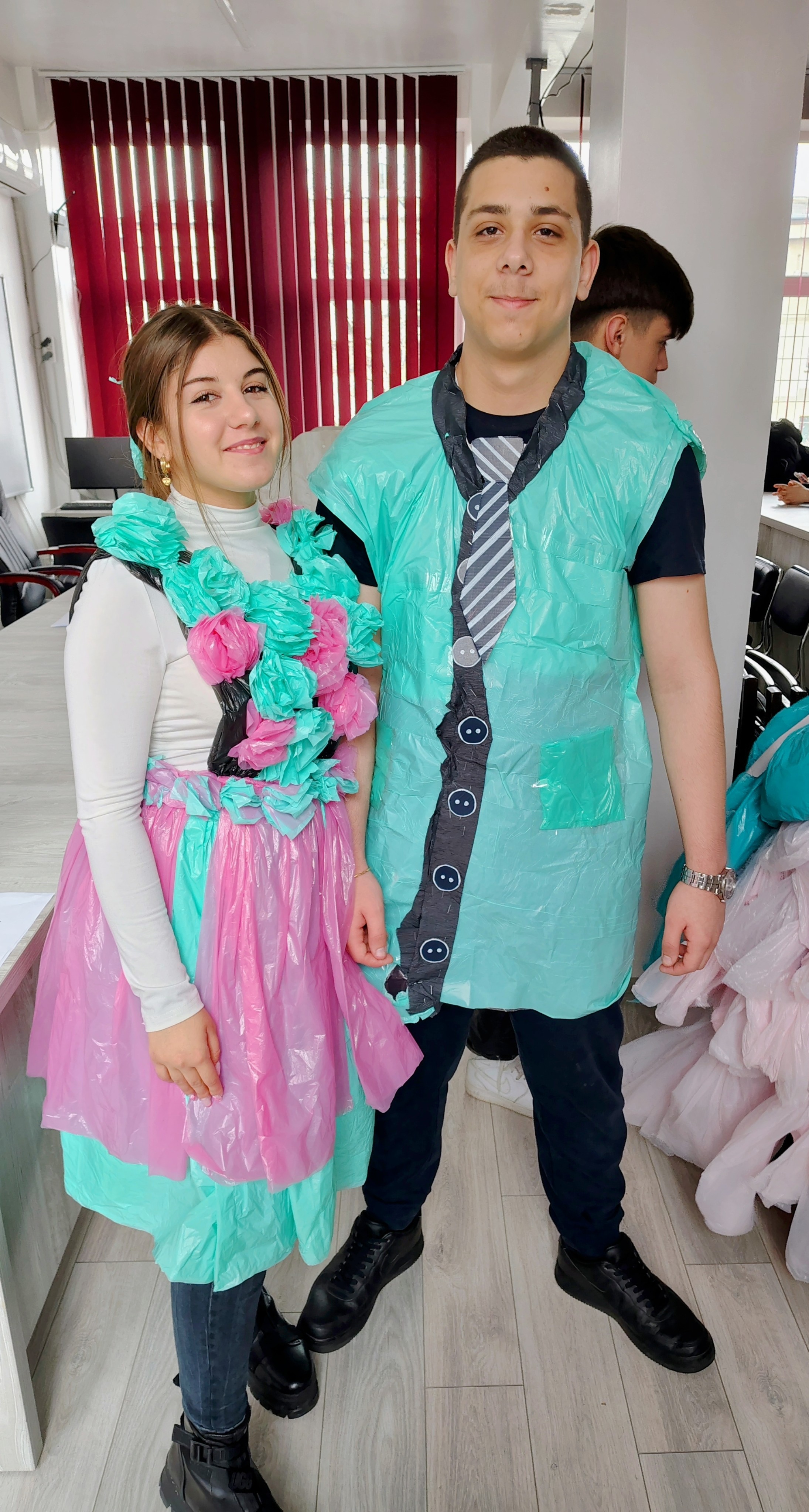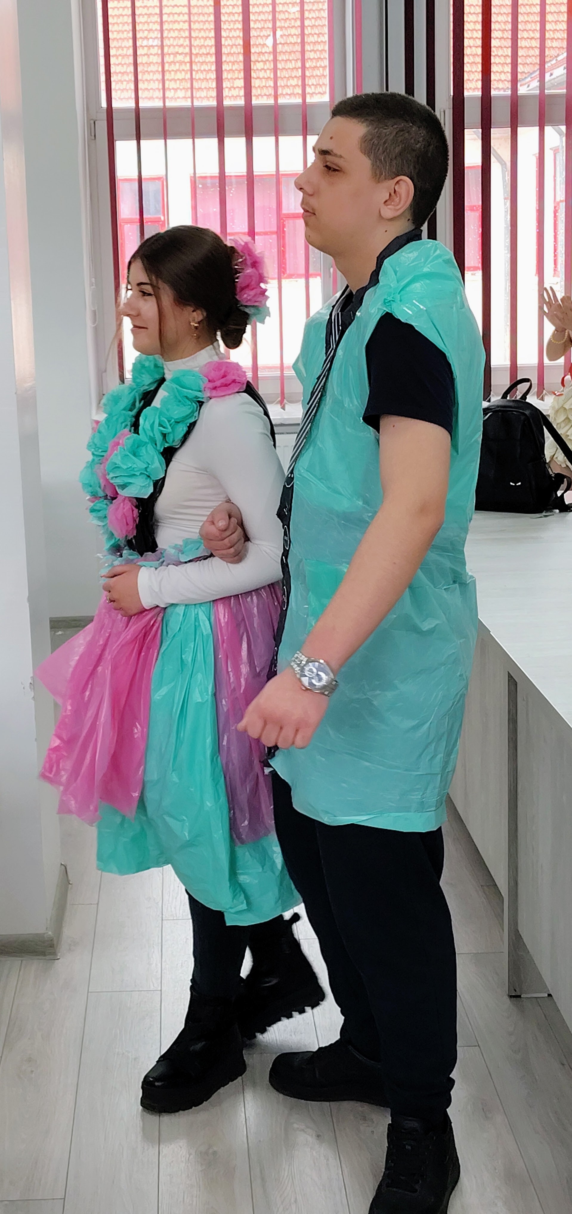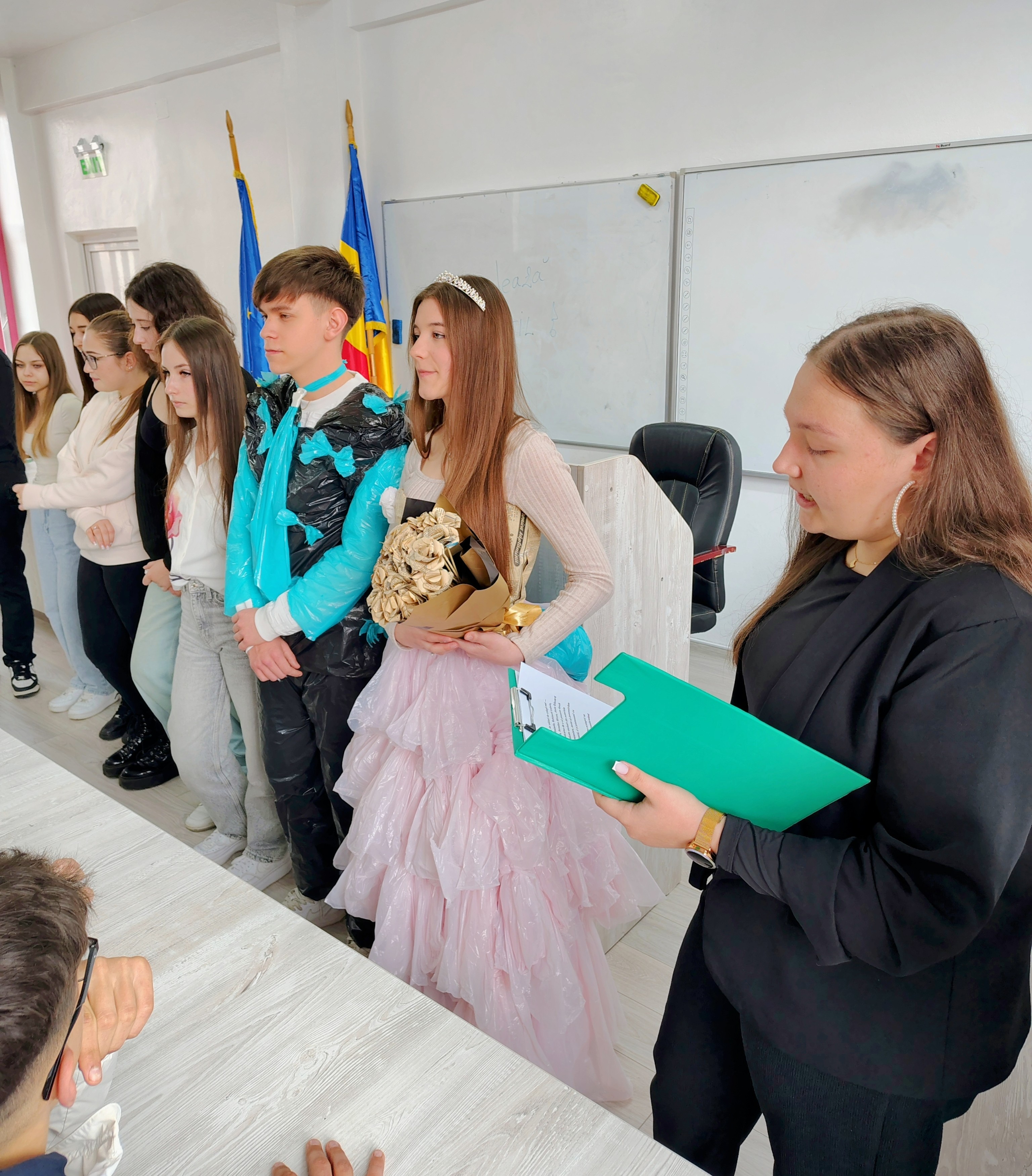 80 de elevi din clasele X A, X D, X G, XI A, XI C, XI H – prezentare de ținute realizate din materiale reciclabile.