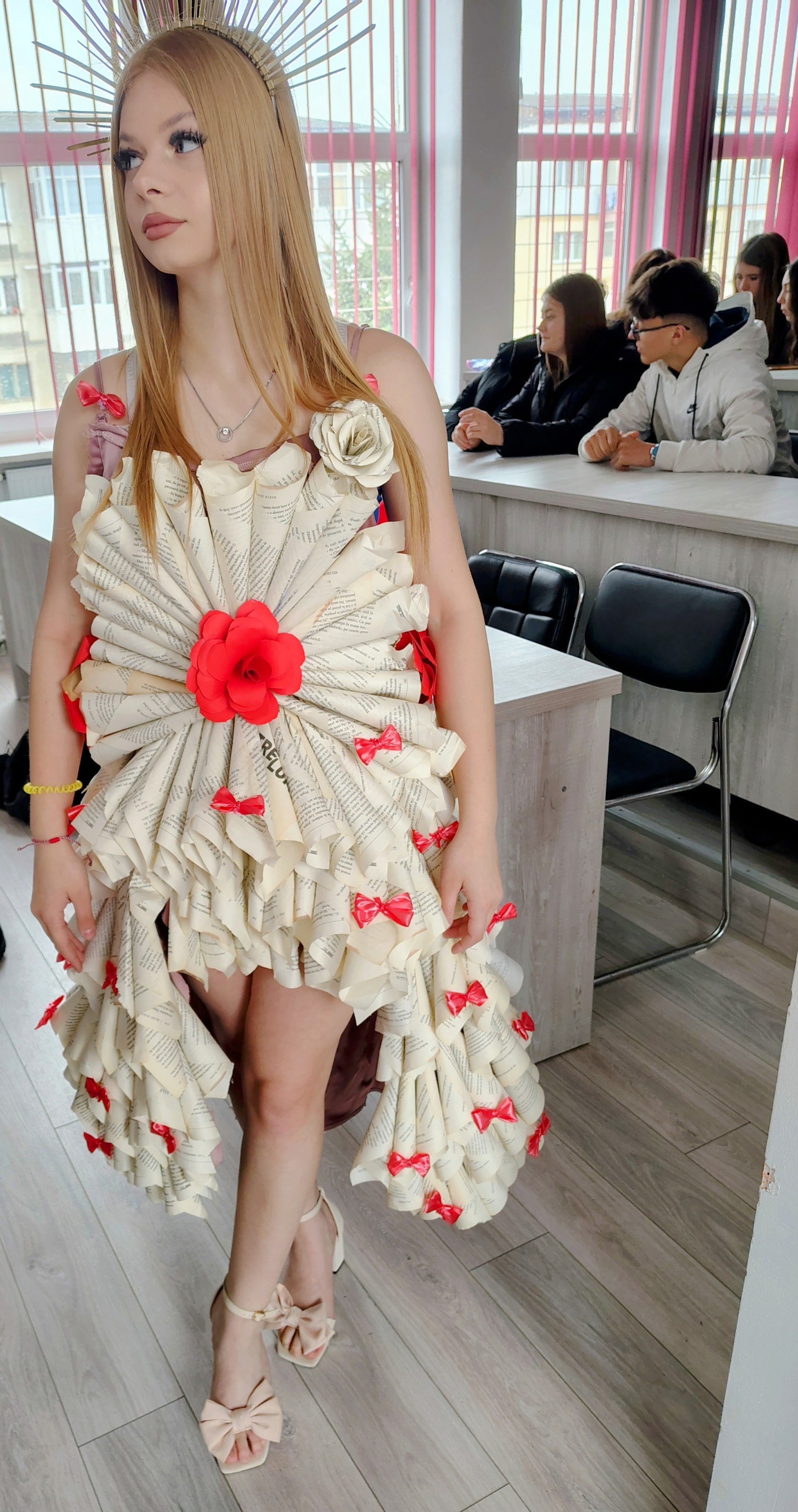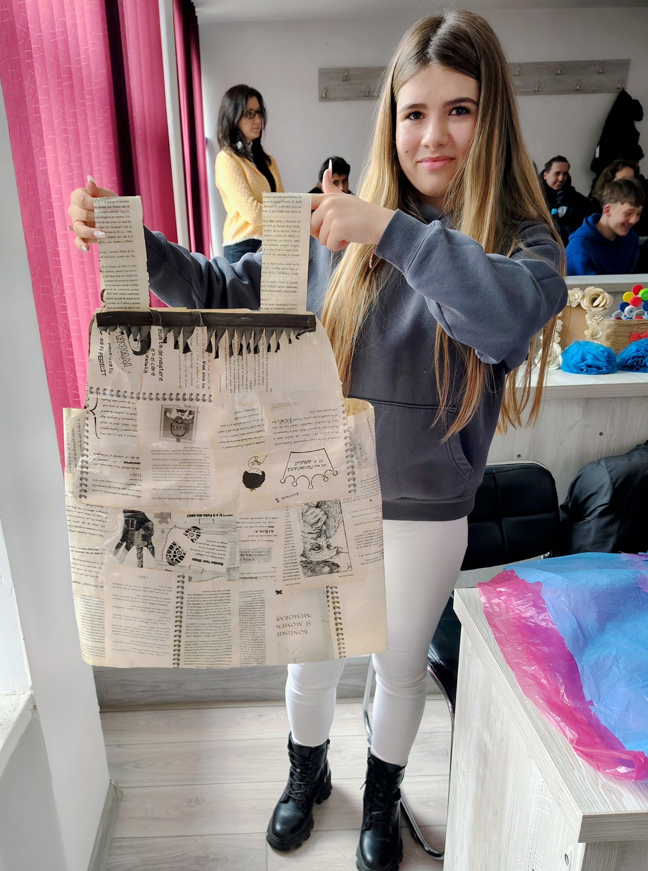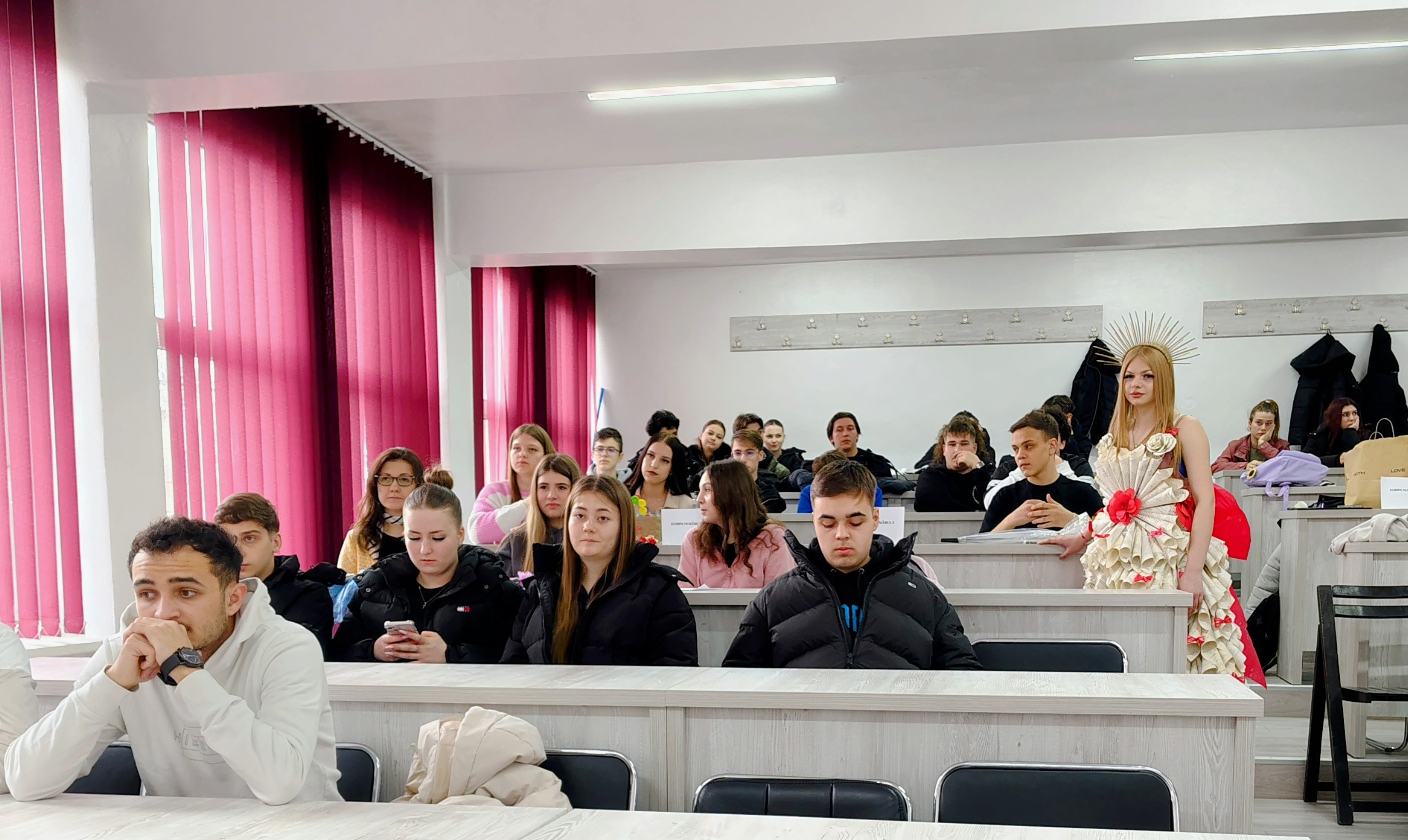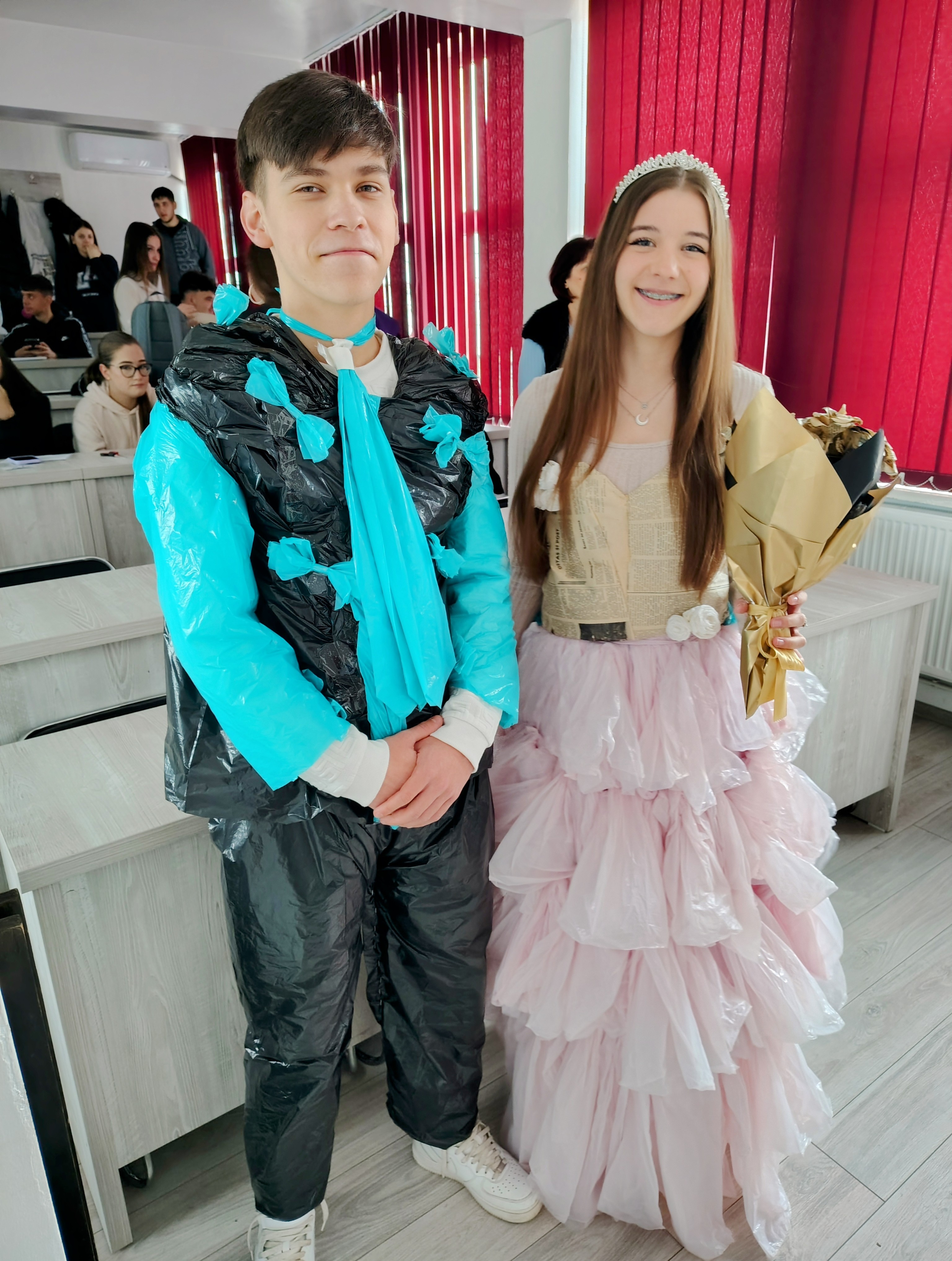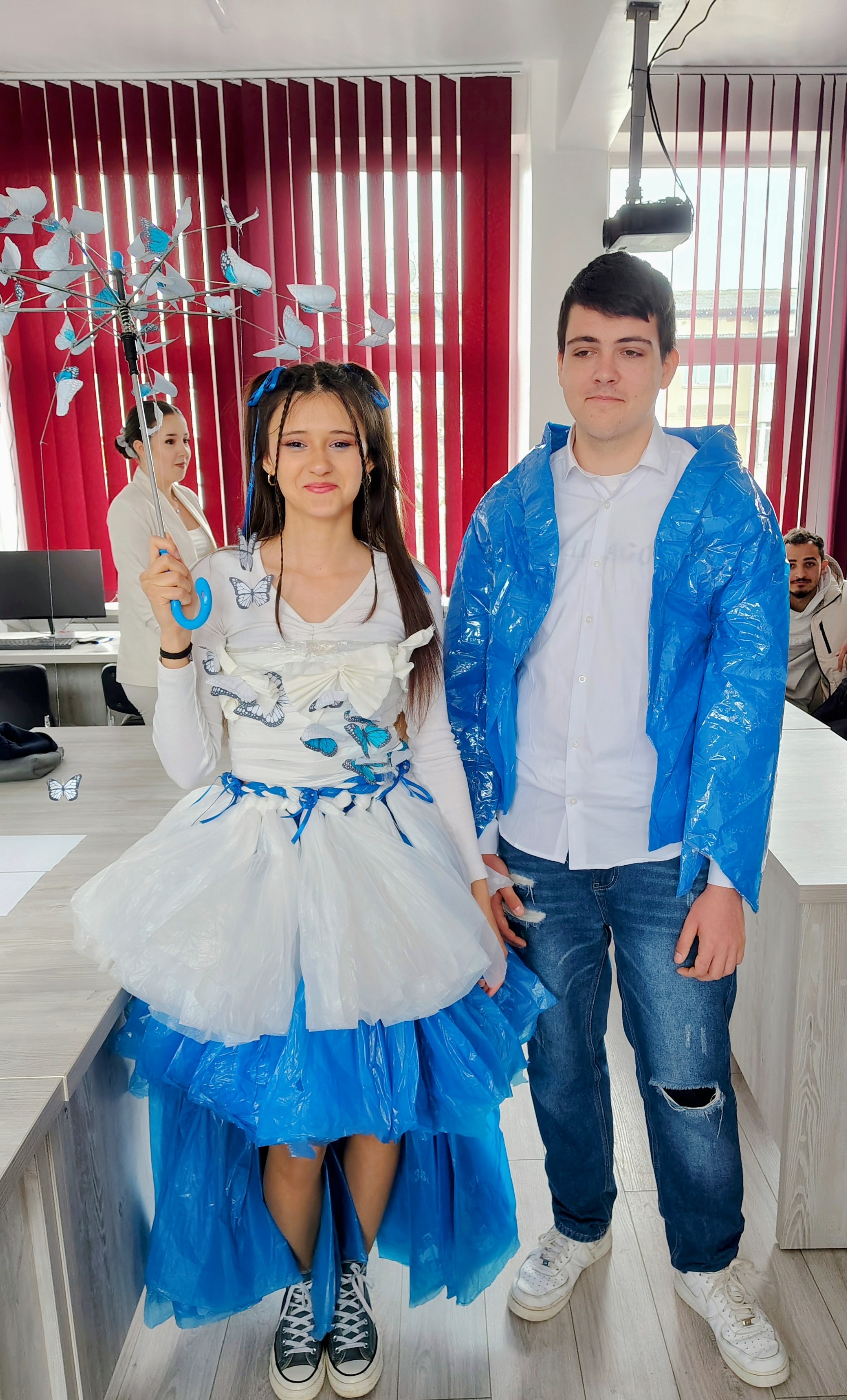 80 de elevi din clasele X A, X D, X G, XI A, XI C, XI H – prezentare de ținute realizate din materiale reciclabile.