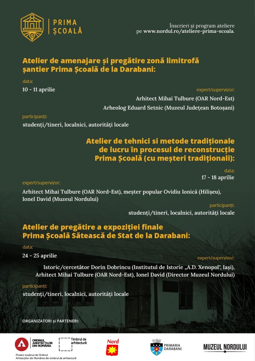 Sâmbătă, 24 aprilie 2021, la Muzeul Nordului din Darabani s-a derulat atelierul de pregătire a expoziției finale „Prima Școală Sătească de Stat de la Darabani”, cu participanți de la Cluj, Iași și din localitate.