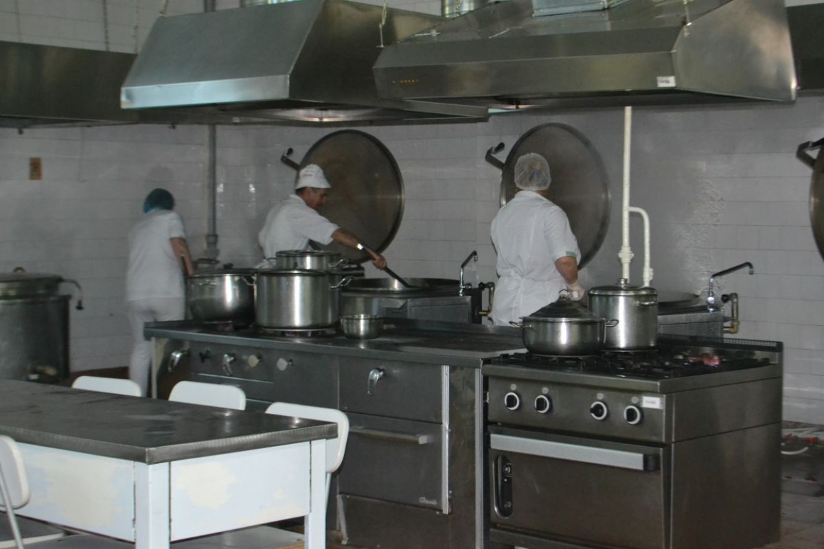 Încă de dimineață bucătăresele munceau de zori pentru meniul zilnic, iar din imensele cazane ieșeau aburi puternici. Mirosul frumos de mâncare se simțea de pe hol. Și fiindcă e mult de muncă, se lucrează în două schimburi, iar zilnic sunt patru bucătari, un muncitor necalificat și un îngrijitor curățenie. Practic, în bucătăria în care am fost noi se gătește pentru pacienții internați în trei locații, respectiv sediul central al Spitalului Mavromati, Secția de Psihiatrie și Secția de Infecto-Contagioase.