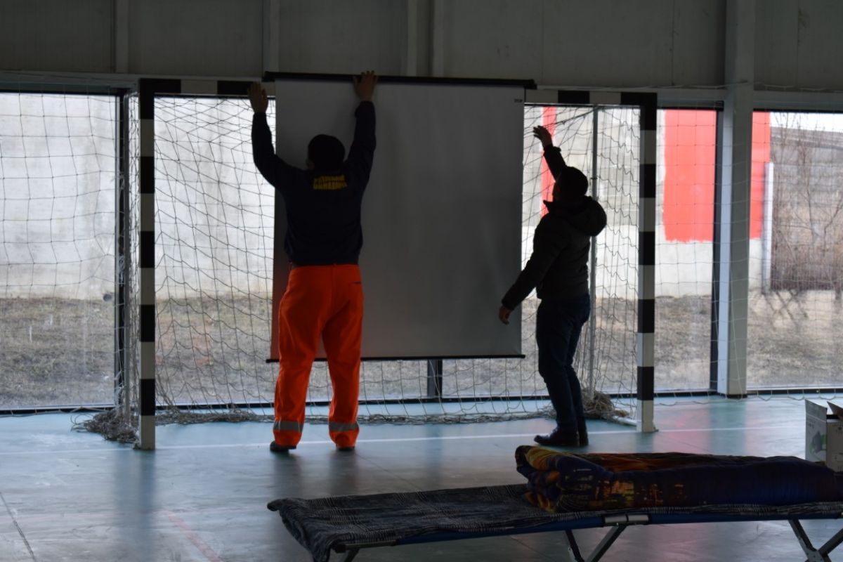 Sunt deja 66 de paturi și urmează să ajungă alte 50 de saltele care sunt deja plătite. Cu o noapte înainte au fost găzduiți 50 de refugiați. Pe două dintre saltele stau doi ursuleți de pluș. Așteaptă copii pentru a stârni urme de zâmbet.
