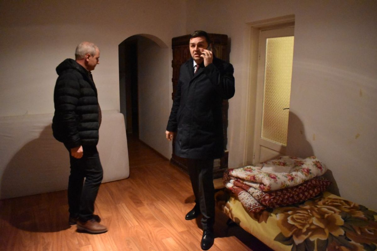 Însoțit de primarul Florin Buțura sunt vizitate trei locații temporare de cazare, un centru pentru persoane vârstnice amenajat în fostul sediu al Primăriei, un cămin cultural și o casă cu 15 locuri.