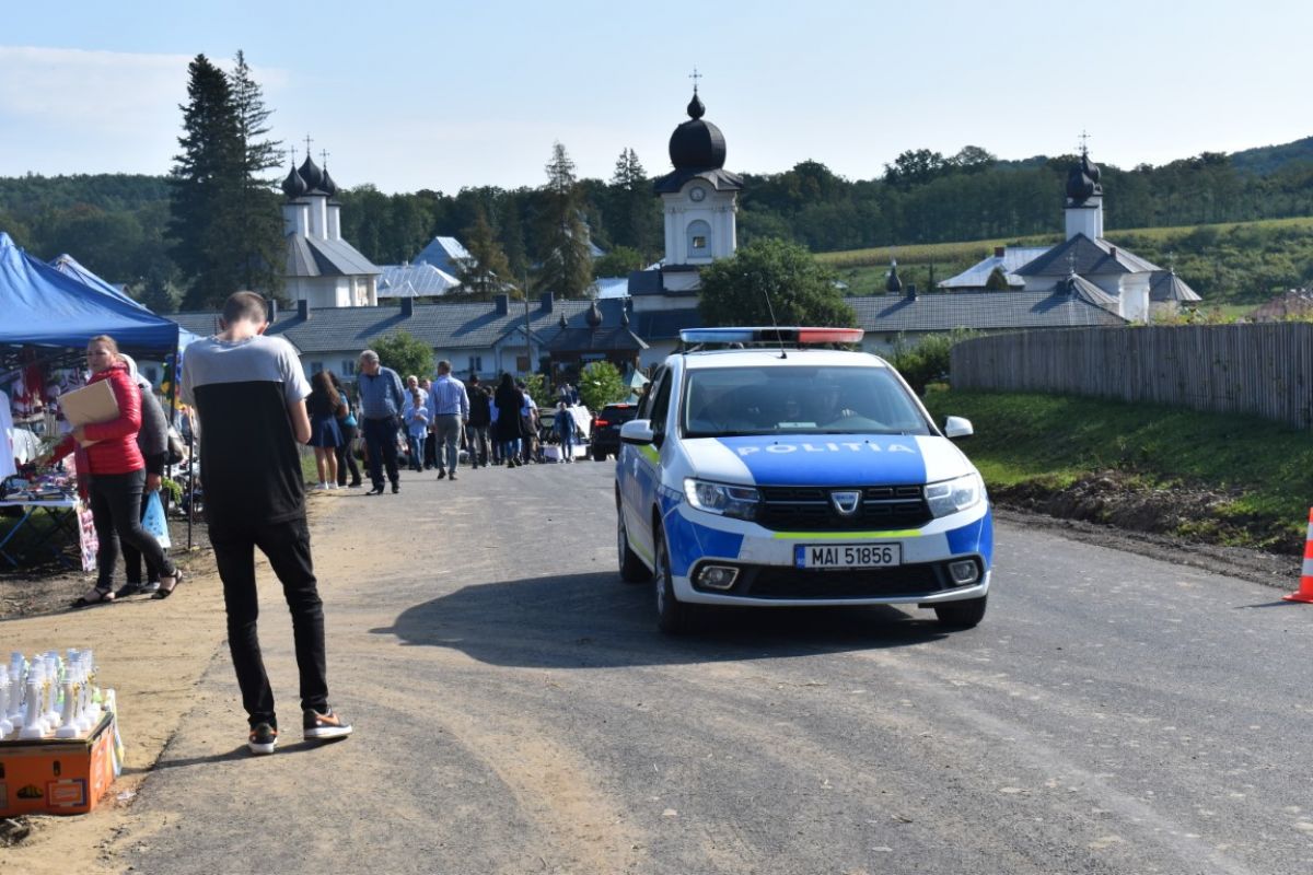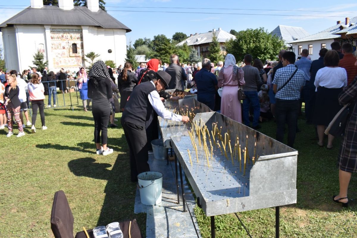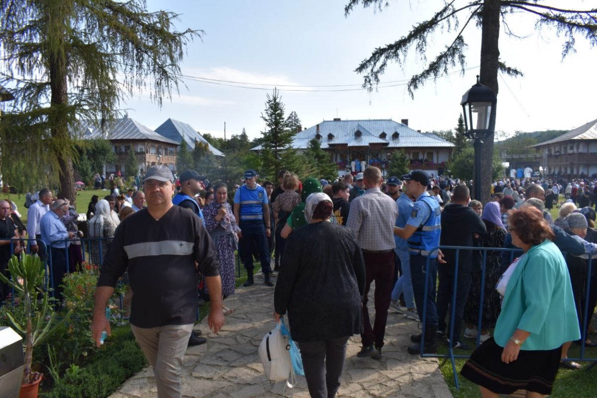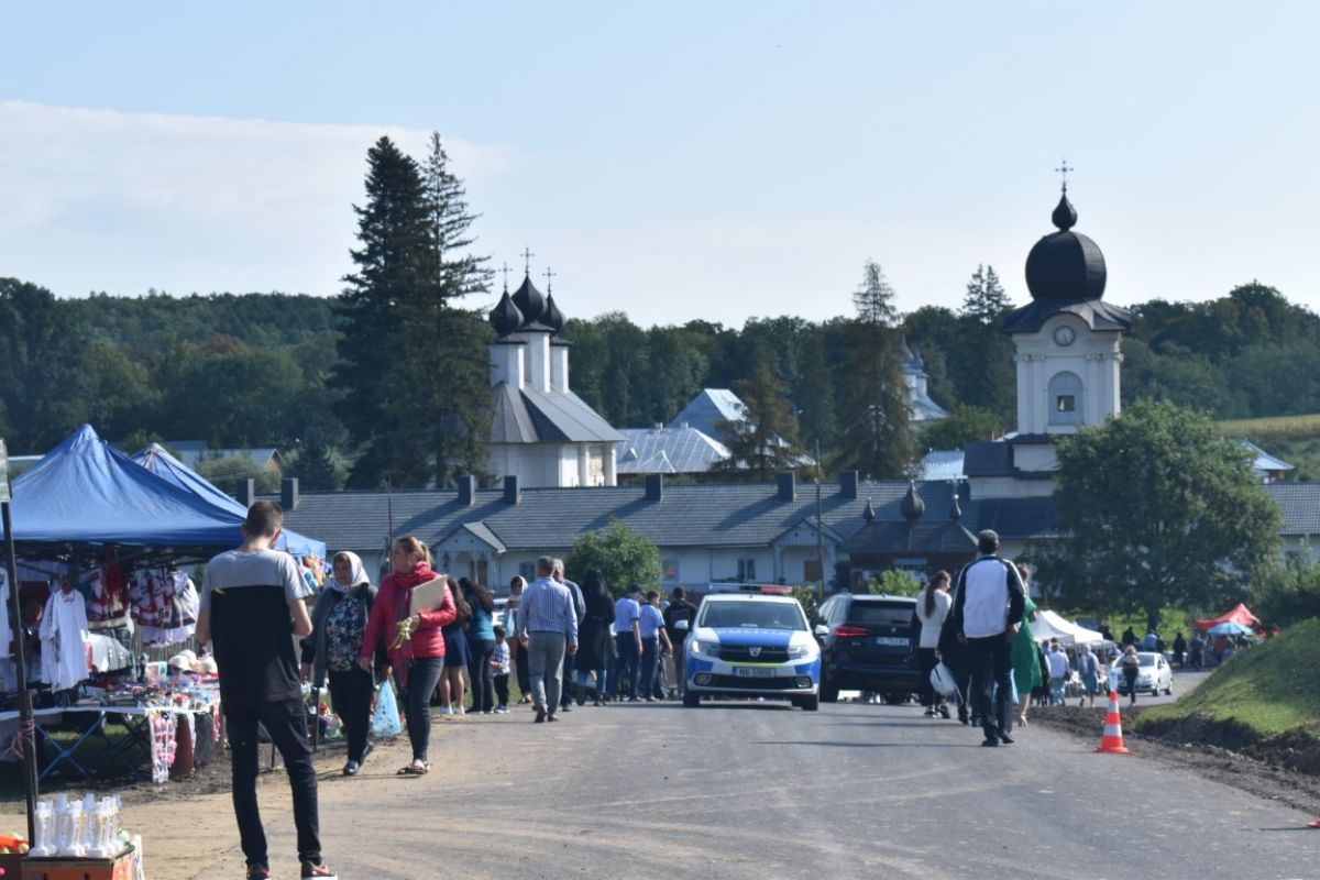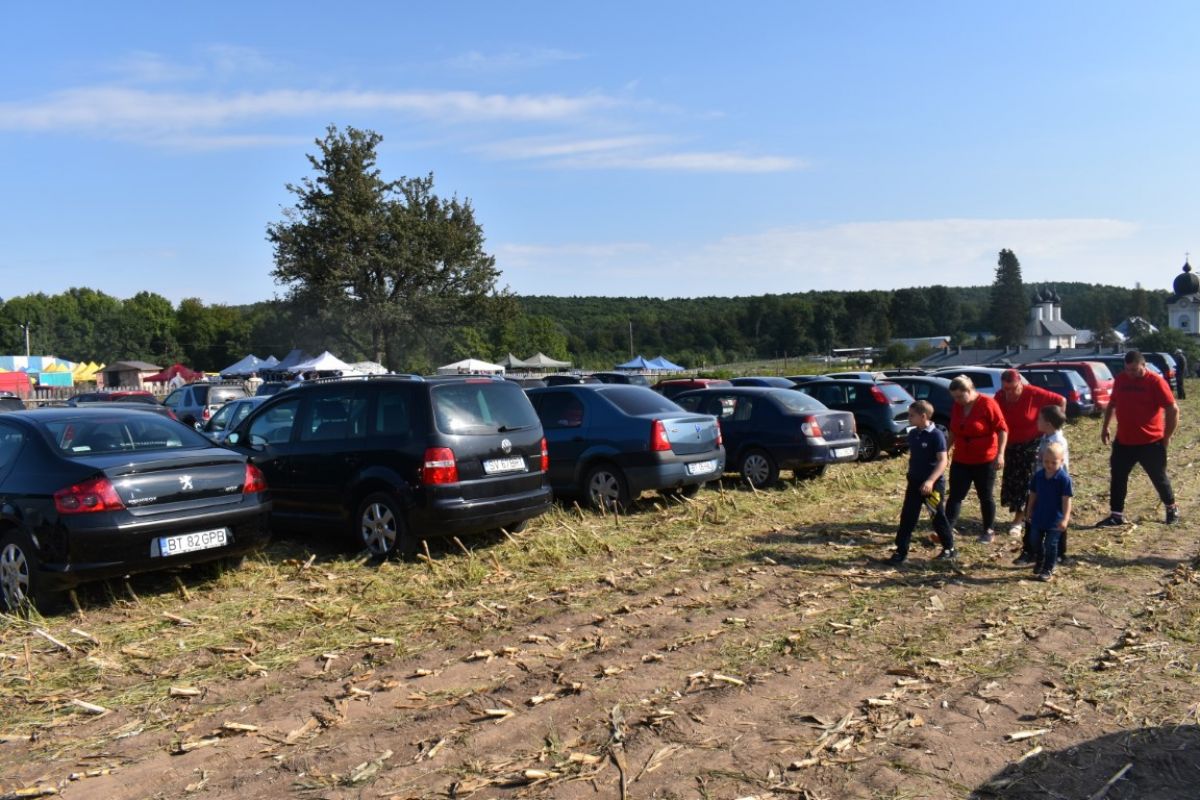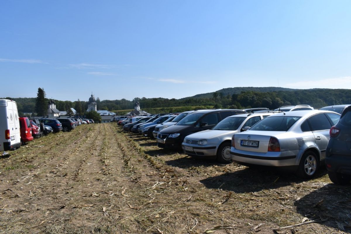 Zona din jurul lăcașului sfânt a devenit neîncăpătoare de la primele ore ale dimineții. Suprafețe de teren de pe care a fost recoltat porumb au fost transformate în parcări pentru sutele de autoturisme care s-au aliniat în șiruri lungi. Polițiștii și jandarmii dirijau mașinile pentru a fi evitate blocajele și astfel ziua de sărbătoare nu a fost umbrită de eventualii nervi ai șoferilor.