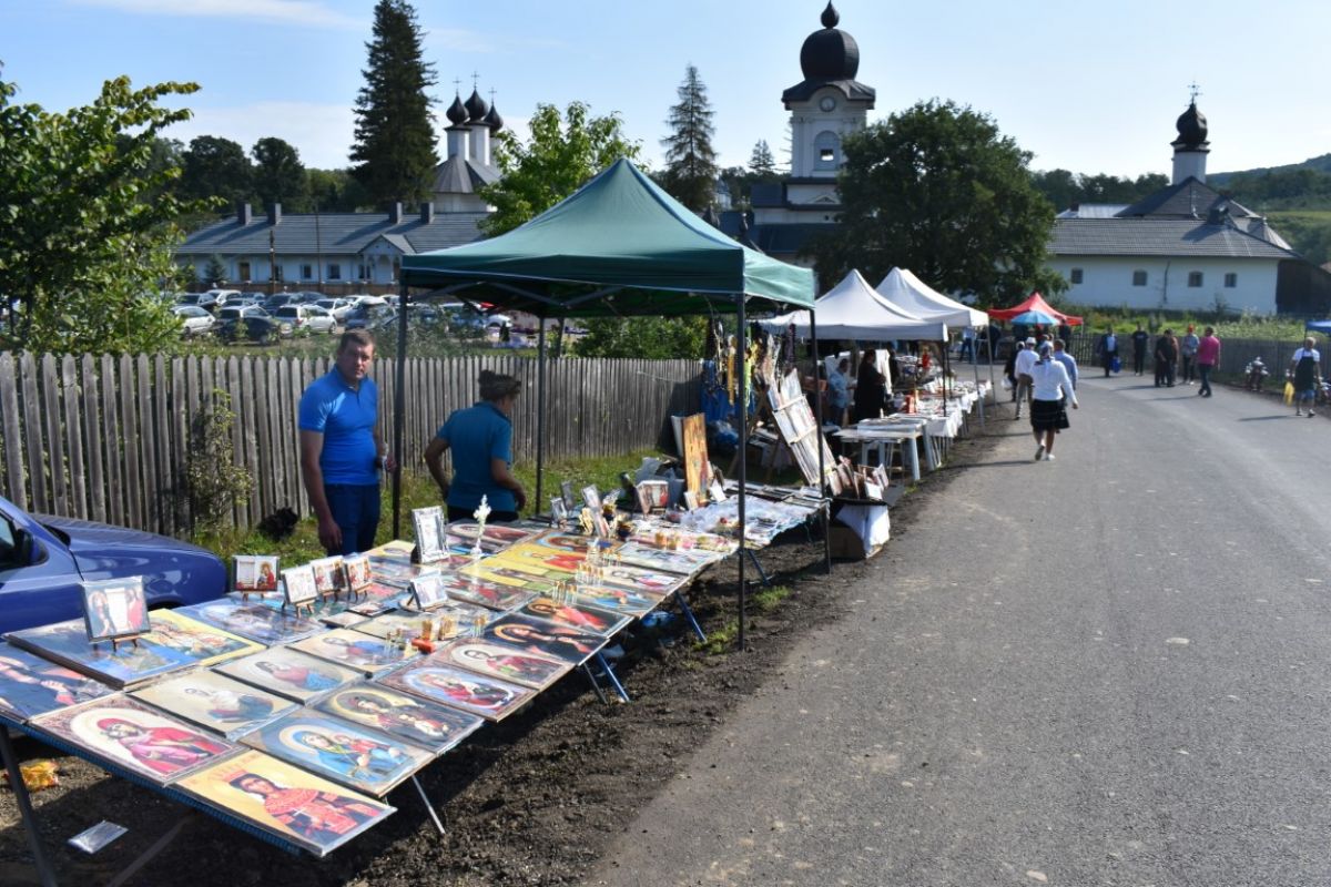 Înaintând spre intrarea pe poarta mănăstirii, de o parte și de alta a drumului se aflau comercianții cu obiecte bisericești expuse spre vânzare, de la icoane sfințite cu Maica Domnului la cruciulițe, mărgele sau brățări religioase sau tămâie și agheasmă.