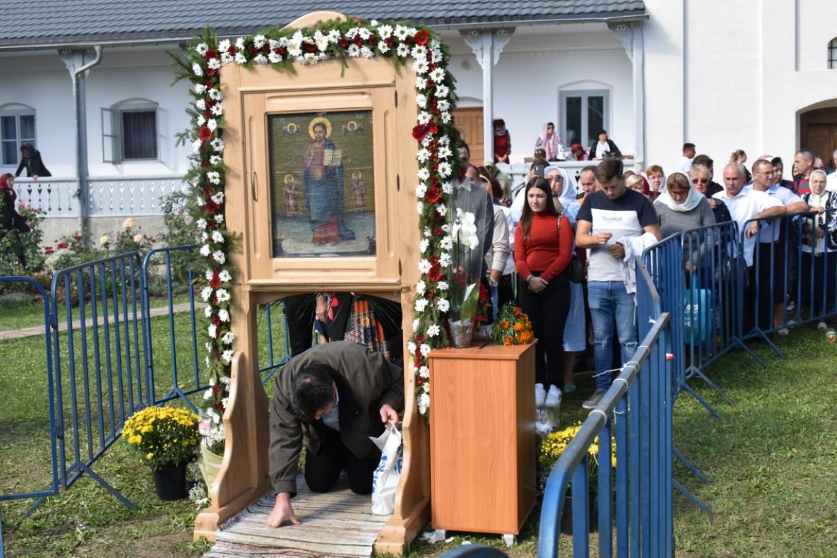 Curtea era tăiată de o coadă impresionantă de oameni care așteptau să treacă pe sub Icoana Făcătoare de Minuni. Unii au așteptat mai bine de o oră pentru a ajunge în zona în care se afla Icoana pentru a adresa rugi Divinității.
