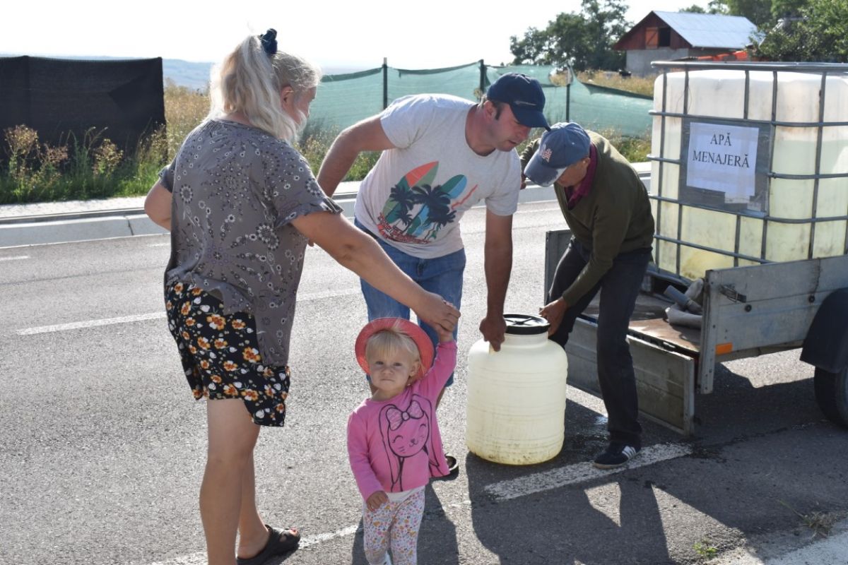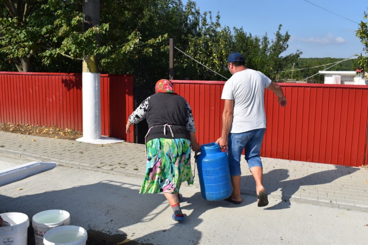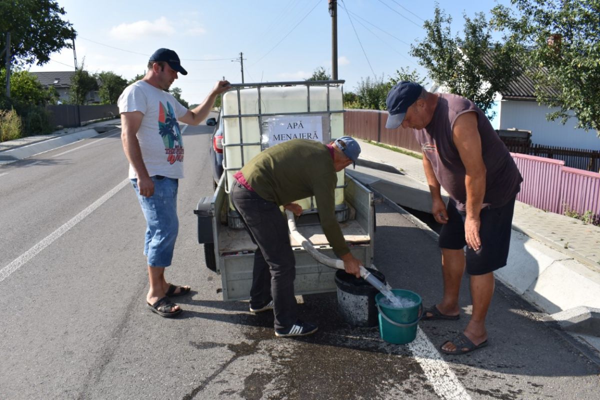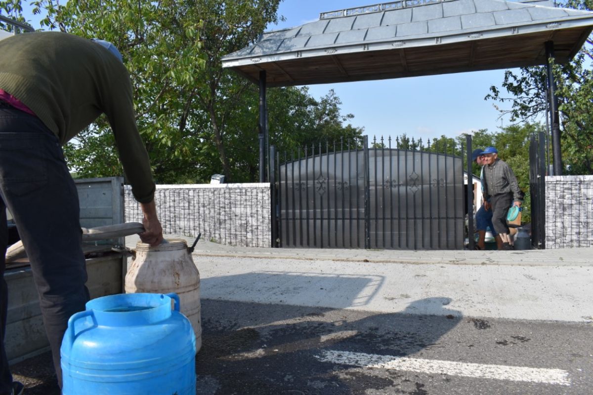 De-a lungul drumului recent asfaltat și cu marcajele rutiere abia uscate, de-o parte și de alta pe la porți se ițesc oamenii. Au tot felul de recipiente, de la gălețile tradiționale la cele din plastic în care au cumpărat var lavabil și care acum au altă utilitate. Bidoane mari sau mai mici sunt văzute aproape la toate porțile. Unii, care sunt acasă ies și schimbă amabilități. Alții, plecați la oraș și-au lăsat gălețile la poartă. La întoarcere le găsesc pline: „știm regulile, intrăm în curte la om, lăsăm apa”, explică vicele.