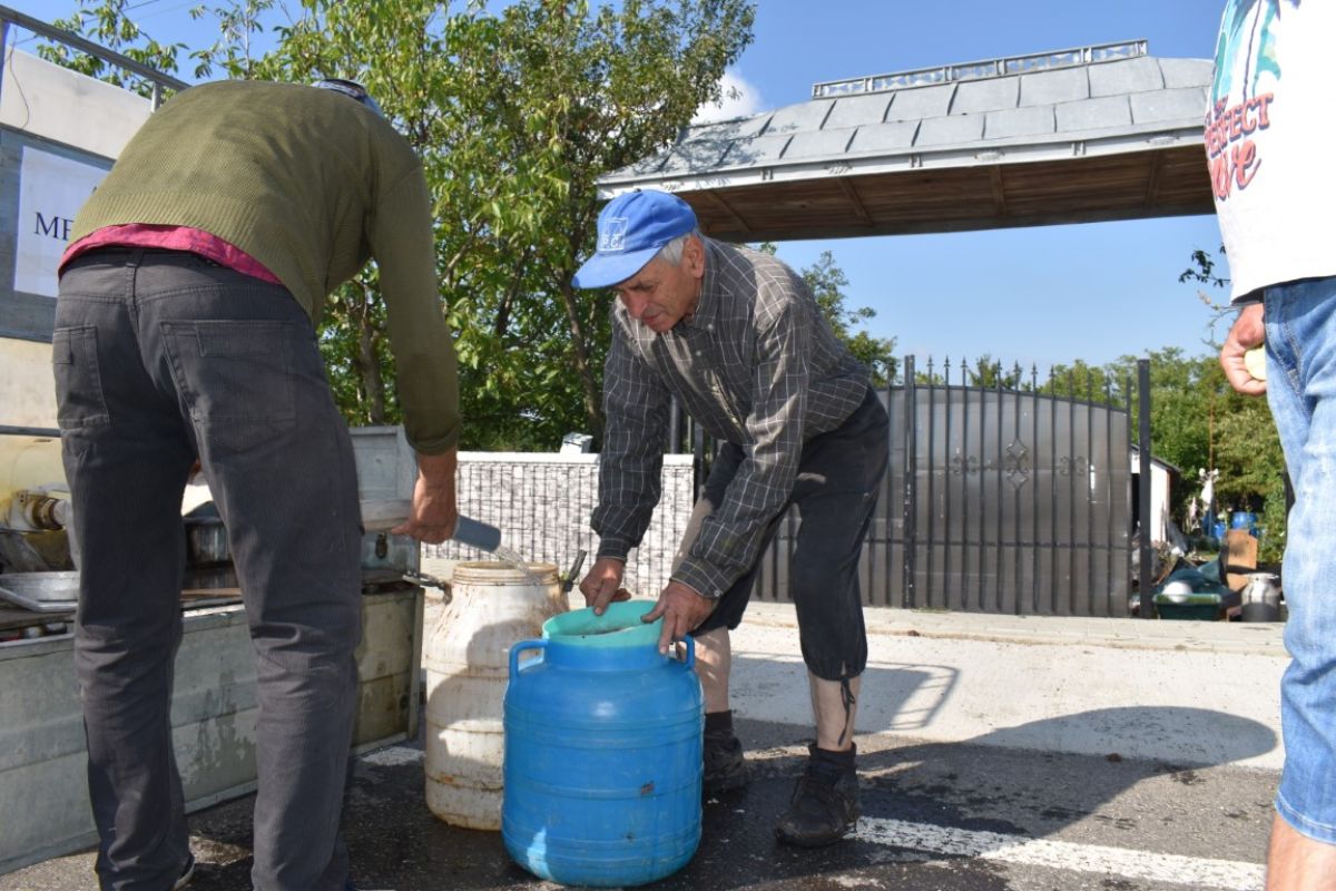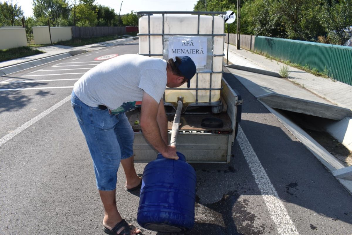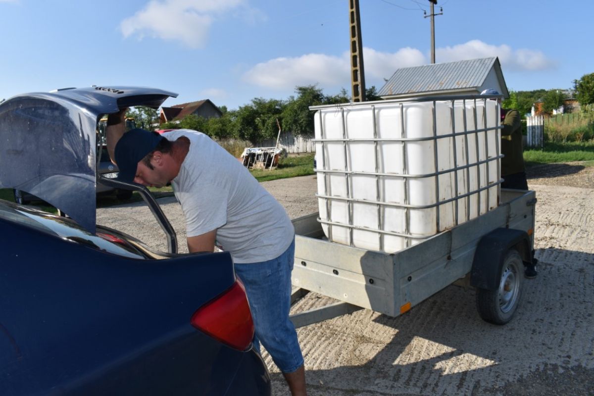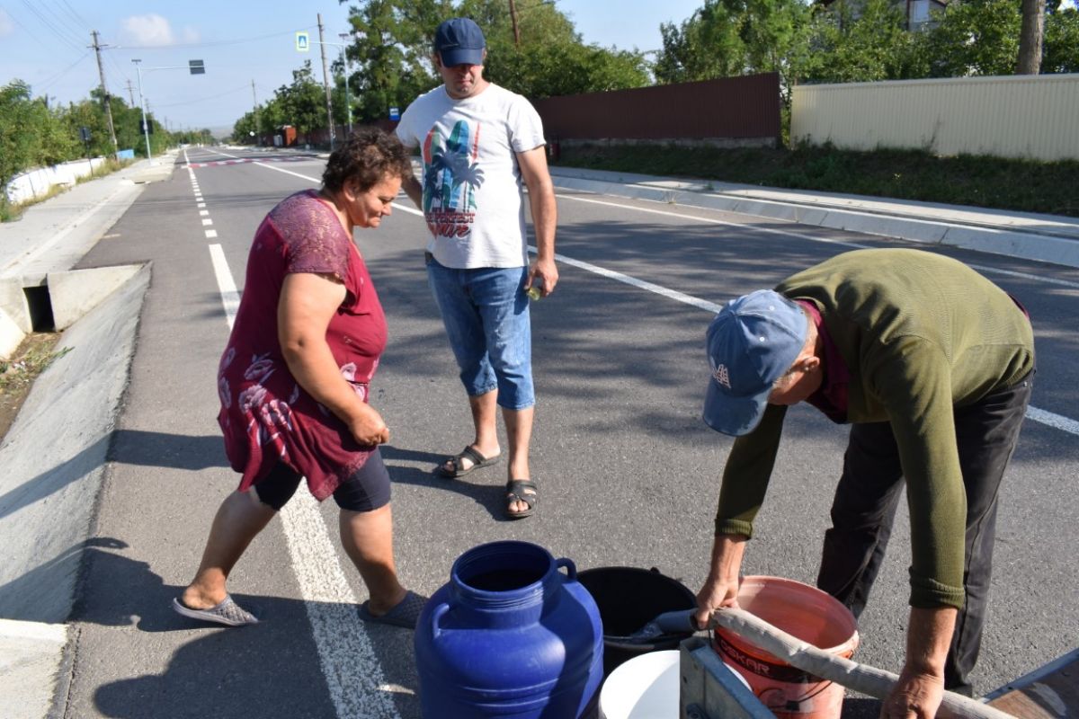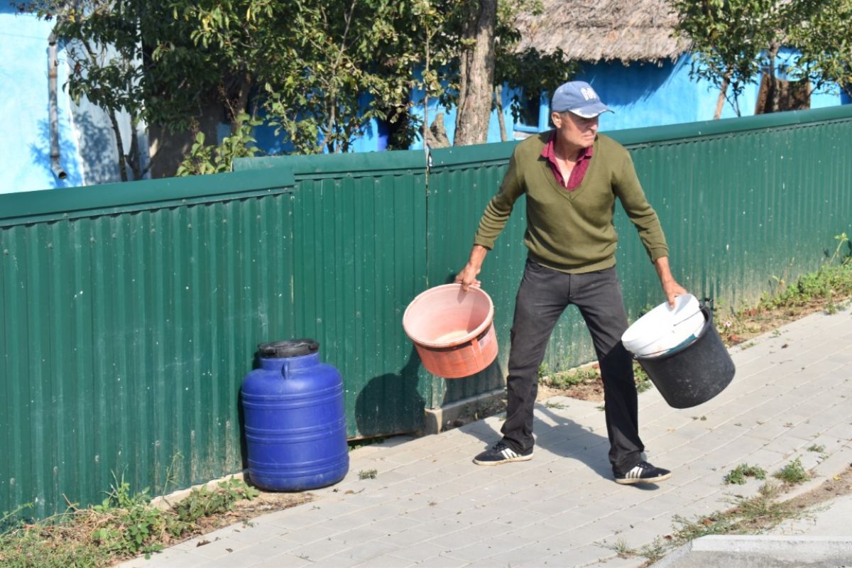 De-a lungul drumului recent asfaltat și cu marcajele rutiere abia uscate, de-o parte și de alta pe la porți se ițesc oamenii. Au tot felul de recipiente, de la gălețile tradiționale la cele din plastic în care au cumpărat var lavabil și care acum au altă utilitate. Bidoane mari sau mai mici sunt văzute aproape la toate porțile. Unii, care sunt acasă ies și schimbă amabilități. Alții, plecați la oraș și-au lăsat gălețile la poartă. La întoarcere le găsesc pline: „știm regulile, intrăm în curte la om, lăsăm apa”, explică vicele.
