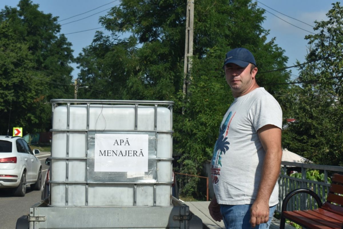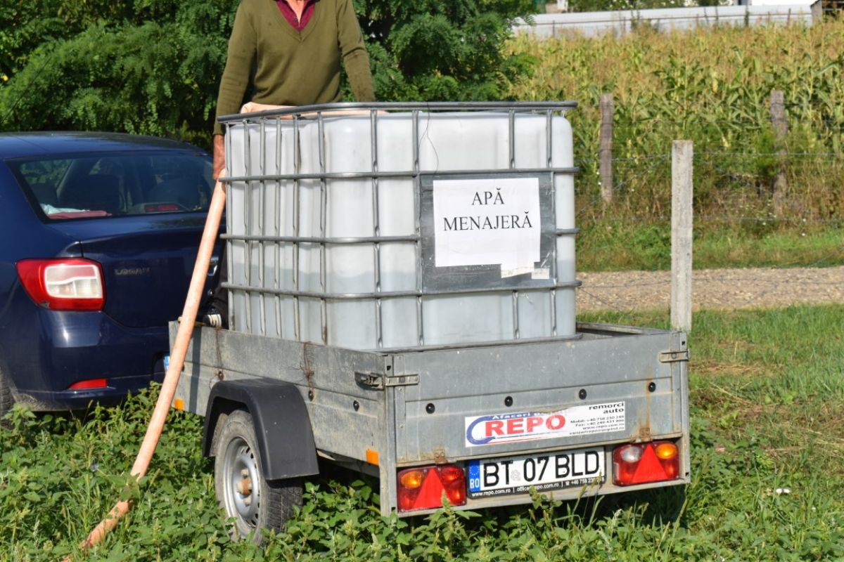 Ajuns la bazinul plin cu apă, explică cum își petrece diminețile, de două ori pe săptămână: „Asta e procedura de livrare de apă. La 21 de km de Botoșani, nu avem apă potabilă. Nu avem canalizare, nu avem nimic. E foarte greu”. Oftează, întinde furtunul și se gândește la sătenii care așteaptă mașina Primăriei: „oamenii ăia trebuie să trăiască, fără apă e foarte greu”.