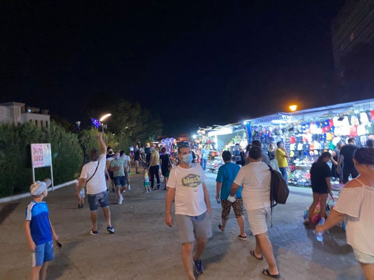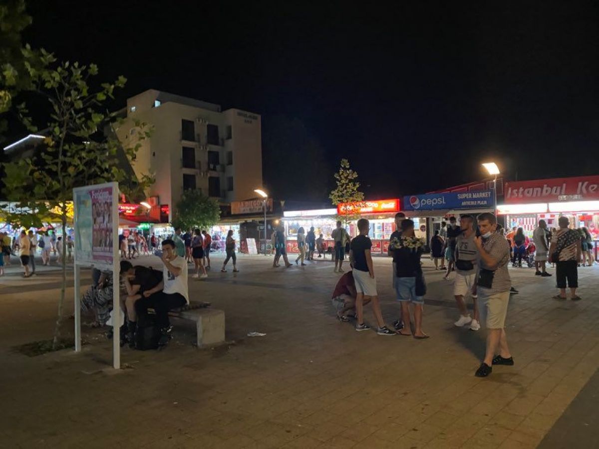 Și acesta este seara imaginea întregii stațiuni: mii și mii de oameni înghesuiți la plimbare, terasele sunt arhipline, cozi la șaorma, la dat cu toporul (jocul ăla stradal pentru copii), la farmacii și la te miri ce. Măști vezi poate mai multe decât te aștepți într-o atmosferă desprinsă parcă dintr-o altă lume, numai că în bună parte joacă rol de bavețică, de cotieră și chiar de șapcă. Bine, dacă nu ți-ai luat un pachet de maști de acasă ești pierdut. La prima farmacie în care intri afli că prețul este de 7 lei. Masca, nu pachetul, că doar e suflată în aur.