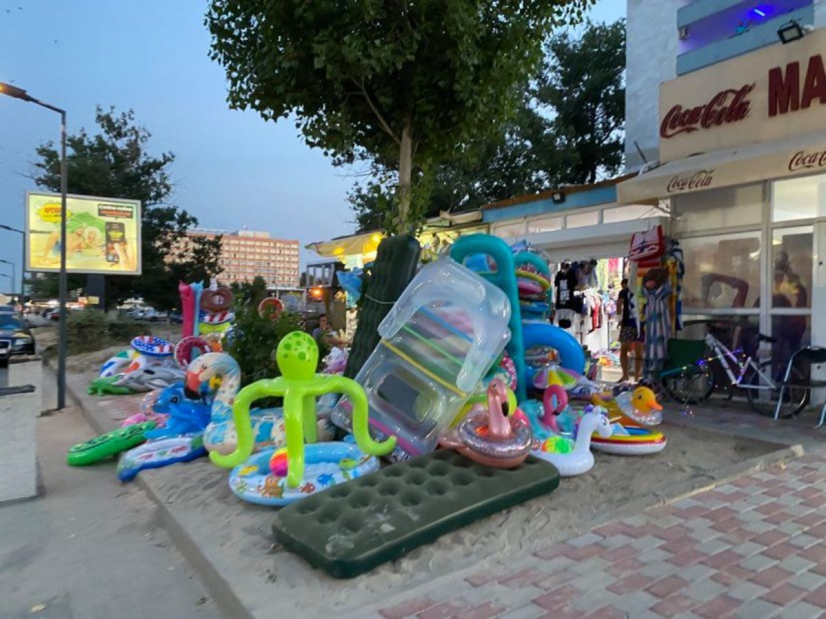 Plus terasele, plus ”împinge tava” cu ”cel mai bun meniu de pe tot litoralul” (ăsta e la toate autoservirile, nu vă munciți să îl căutați), plus magazinele alimentare din care în realitate se revarsă costume de plajă și tot felul de figurine gata umflate, numai bune de cumpărat pentru copii. O combinație de stațiune discotecă – stațiune bazar. Oricum, un prost gust de proporții în care până și operatorii ecologici de la firma de salubrizare s-au apucat de afaceri.