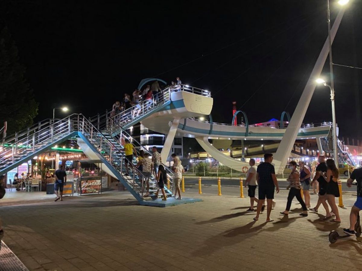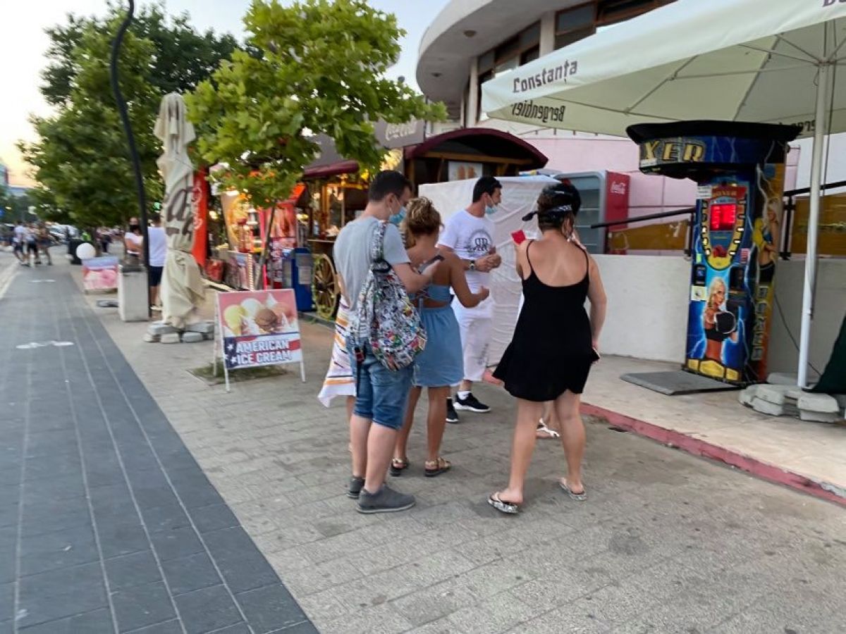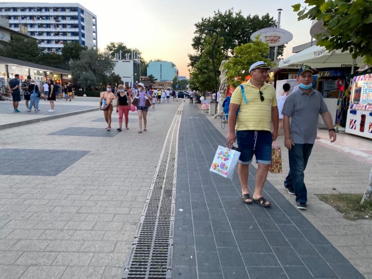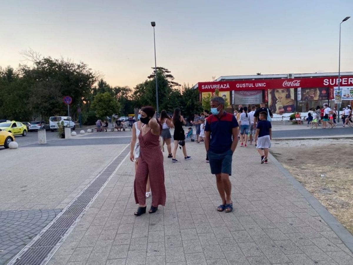 Și acesta este seara imaginea întregii stațiuni: mii și mii de oameni înghesuiți la plimbare, terasele sunt arhipline, cozi la șaorma, la dat cu toporul (jocul ăla stradal pentru copii), la farmacii și la te miri ce. Măști vezi poate mai multe decât te aștepți într-o atmosferă desprinsă parcă dintr-o altă lume, numai că în bună parte joacă rol de bavețică, de cotieră și chiar de șapcă. Bine, dacă nu ți-ai luat un pachet de maști de acasă ești pierdut. La prima farmacie în care intri afli că prețul este de 7 lei. Masca, nu pachetul, că doar e suflată în aur.