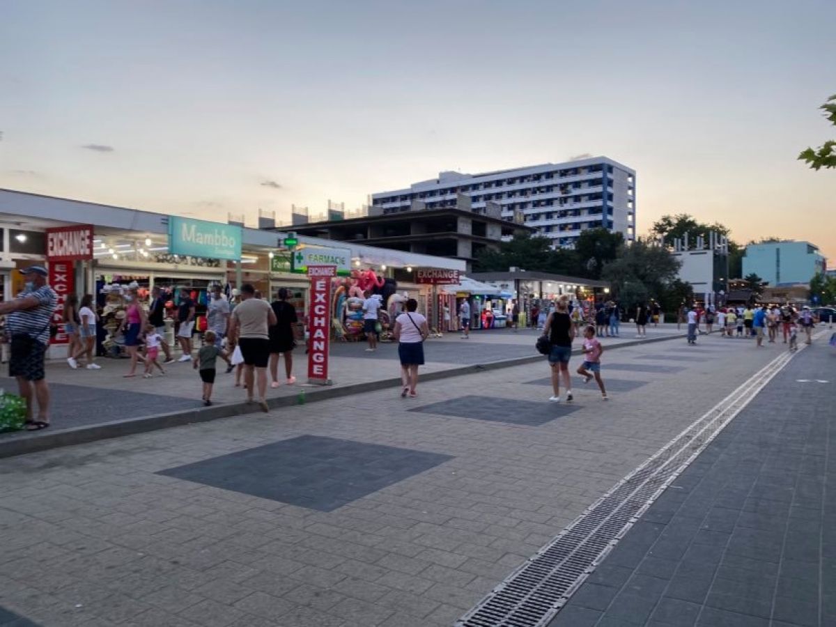 Plus terasele, plus ”împinge tava” cu ”cel mai bun meniu de pe tot litoralul” (ăsta e la toate autoservirile, nu vă munciți să îl căutați), plus magazinele alimentare din care în realitate se revarsă costume de plajă și tot felul de figurine gata umflate, numai bune de cumpărat pentru copii. O combinație de stațiune discotecă – stațiune bazar. Oricum, un prost gust de proporții în care până și operatorii ecologici de la firma de salubrizare s-au apucat de afaceri.