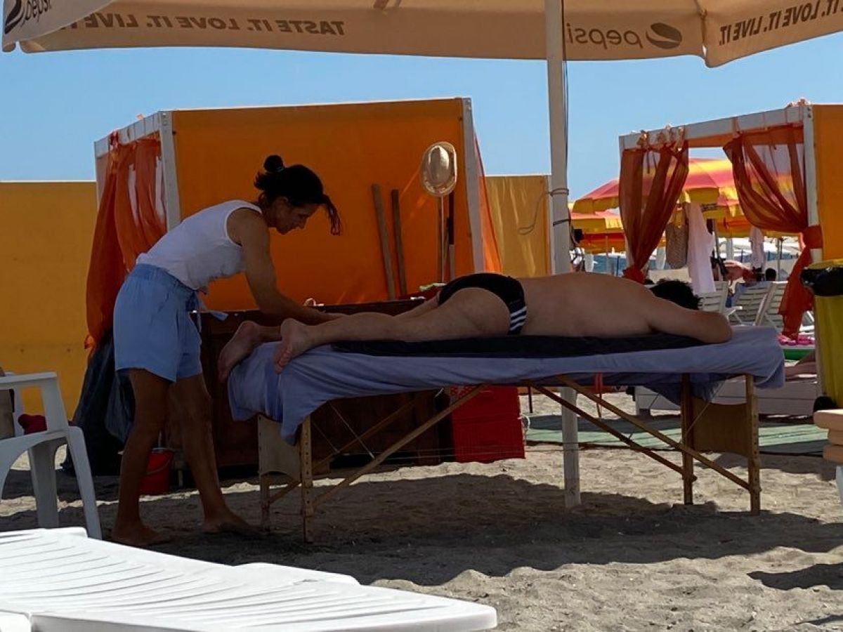 Pleacă el, vine o tanti cu sticle de nămol. Pleacă tanti cu nămolul, vine fata cu scoicile. Pleacă fata cu scoicile, vine băiatul cu pietrele.