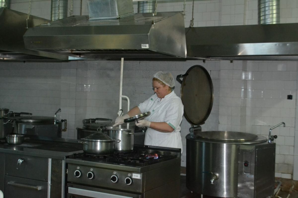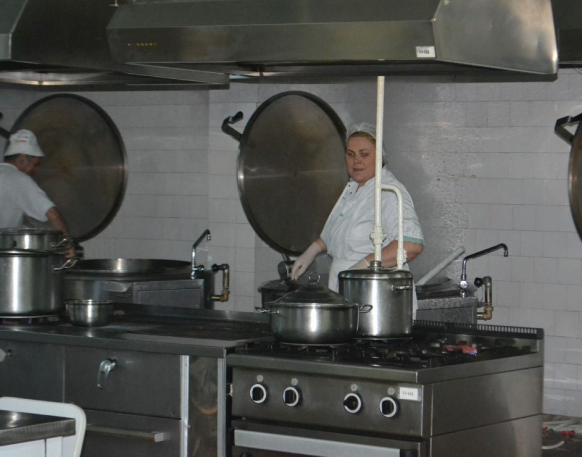 Încă de dimineață bucătăresele munceau de zori pentru meniul zilnic, iar din imensele cazane ieșeau aburi puternici. Mirosul frumos de mâncare se simțea de pe hol. Și fiindcă e mult de muncă, se lucrează în două schimburi, iar zilnic sunt patru bucătari, un muncitor necalificat și un îngrijitor curățenie. Practic, în bucătăria în care am fost noi se gătește pentru pacienții internați în trei locații, respectiv sediul central al Spitalului Mavromati, Secția de Psihiatrie și Secția de Infecto-Contagioase.