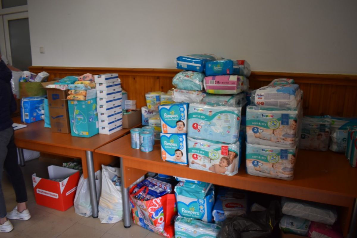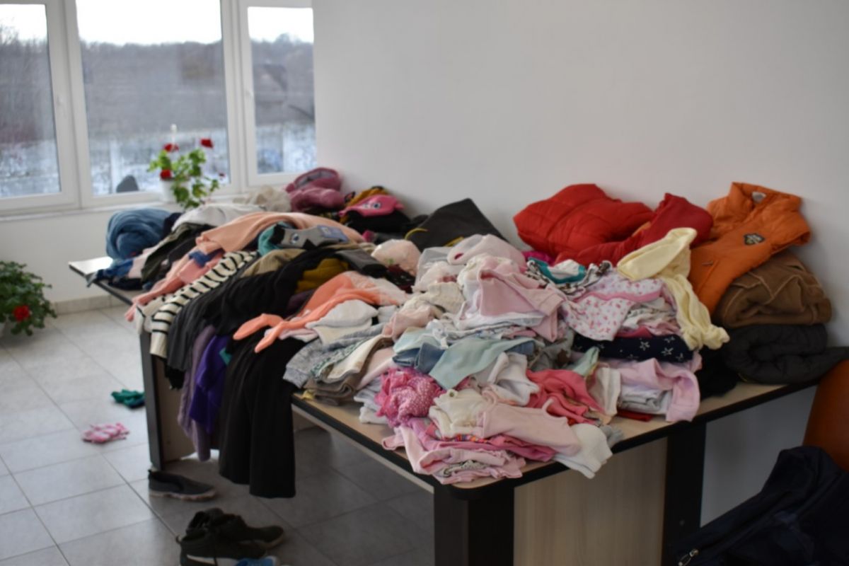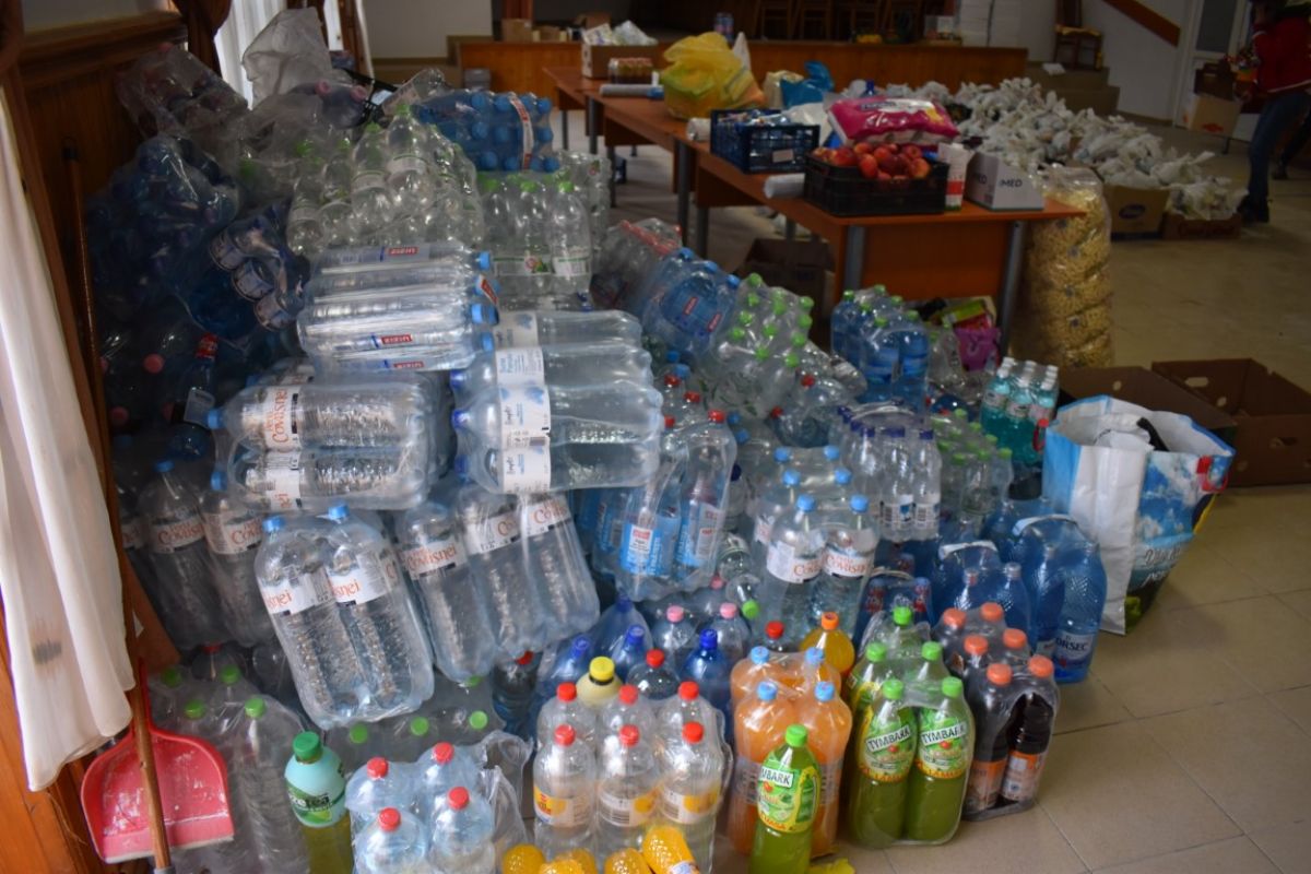 120 de locuri sunt disponibile în centru pentru ucraineni. Peste tot sunt alimente, produse de igienă, apă, fructe, haine și încălțăminte donate de civili.