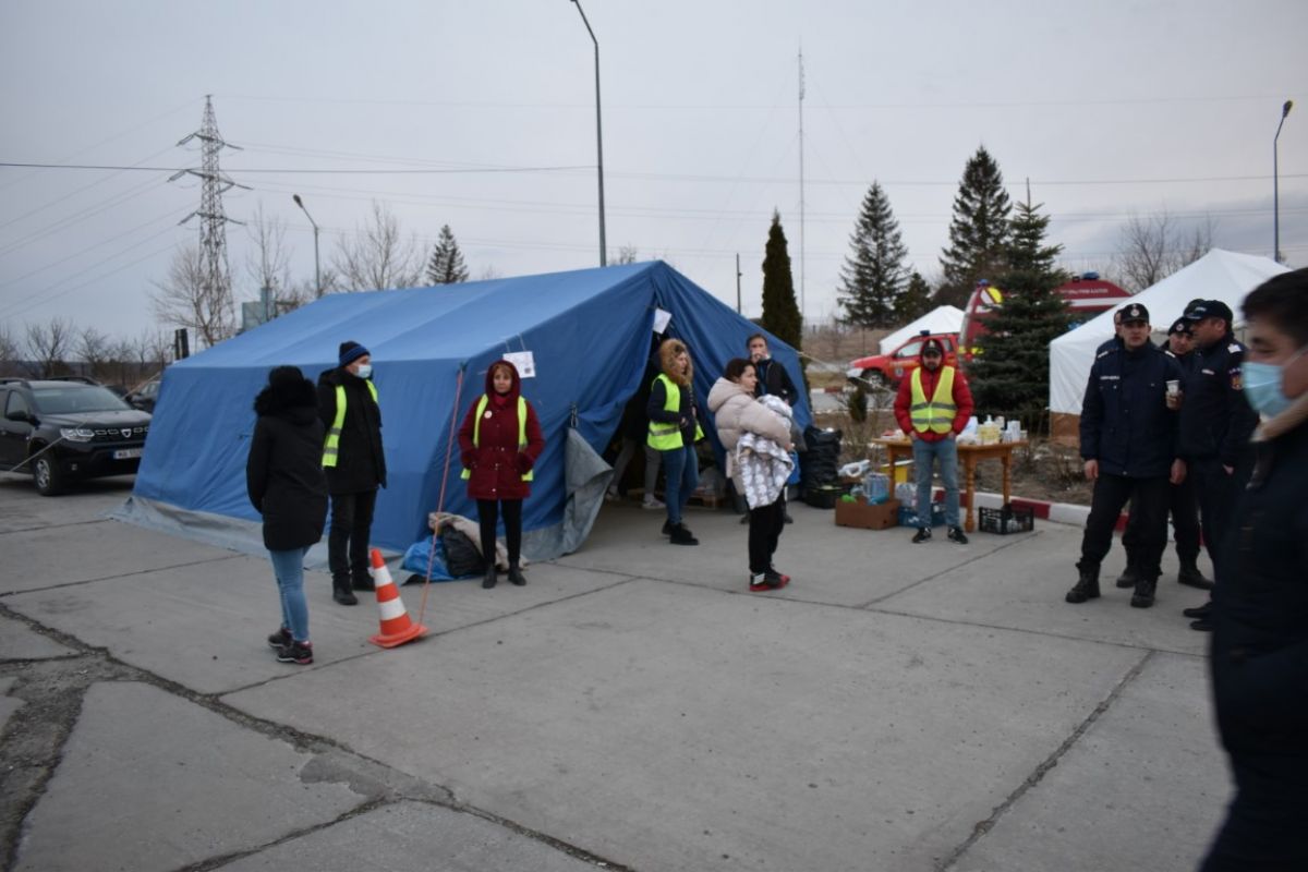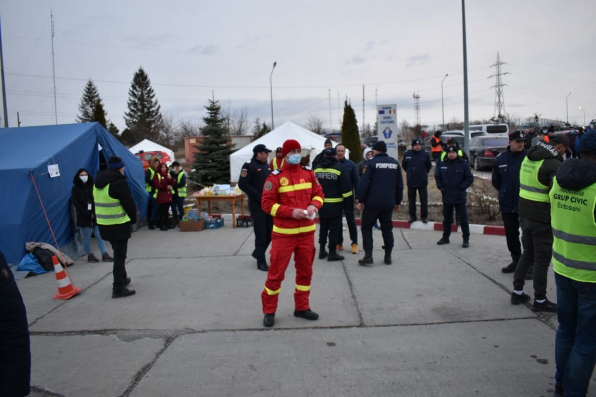 Mașina MAI a prefectului ajunge la Punctul de Trecere al Frontierei Rădăuți Prut. Șefii structurilor MAI se află deja acolo, „ne organizăm, am eliberat un pic aici zona de protecție pentru voluntari, la intersecție vor fi toți acolo și vor ține legătura cu persoanele care vor să ajute. Sunt trei corturi cu zone de triaj”, transmite un reprezentant din Jandarmeria Botoșani.