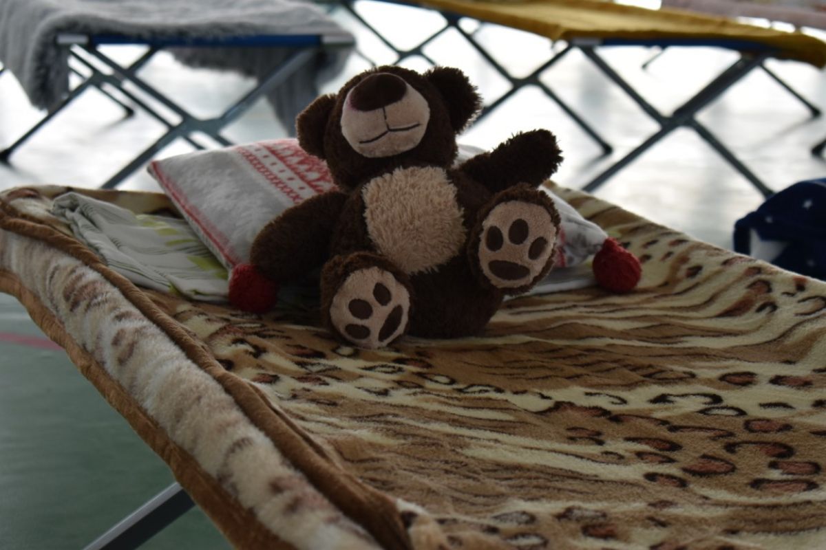 Sunt deja 66 de paturi și urmează să ajungă alte 50 de saltele care sunt deja plătite. Cu o noapte înainte au fost găzduiți 50 de refugiați. Pe două dintre saltele stau doi ursuleți de pluș. Așteaptă copii pentru a stârni urme de zâmbet.